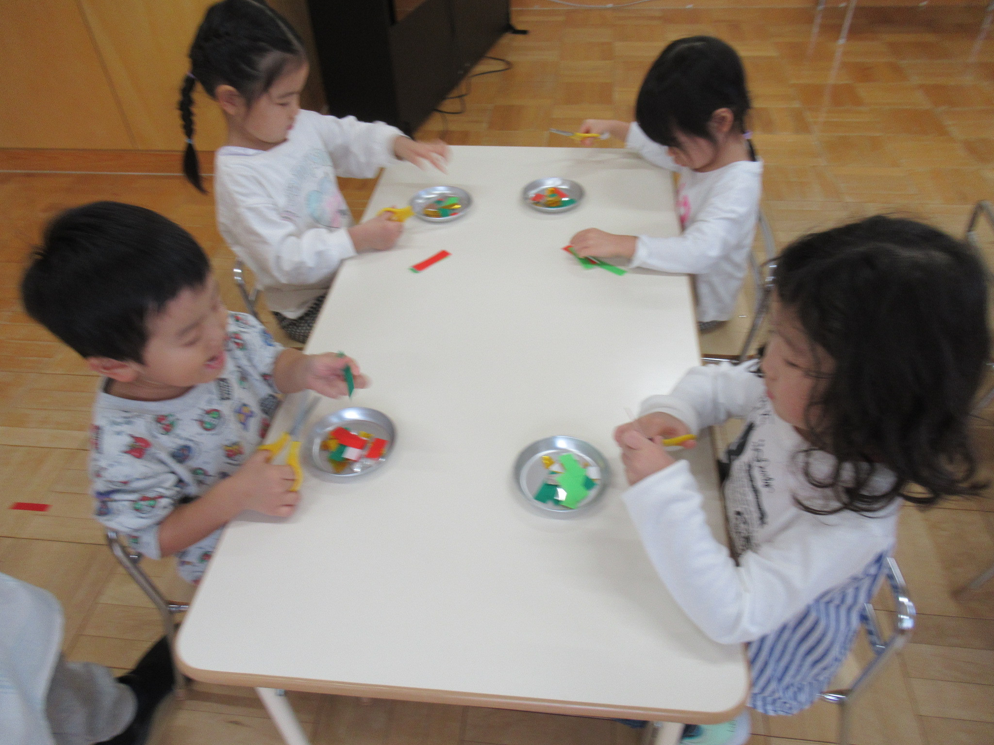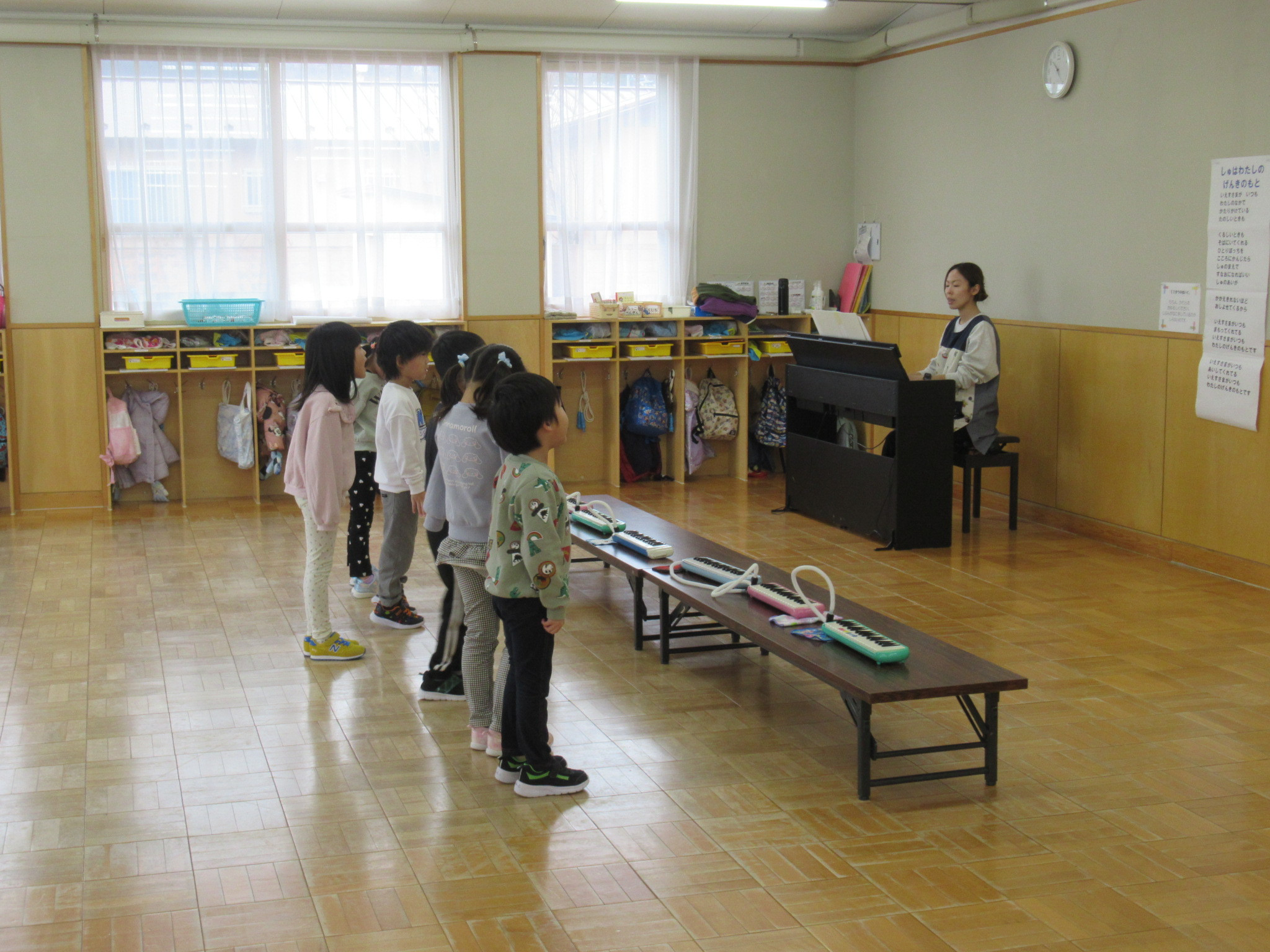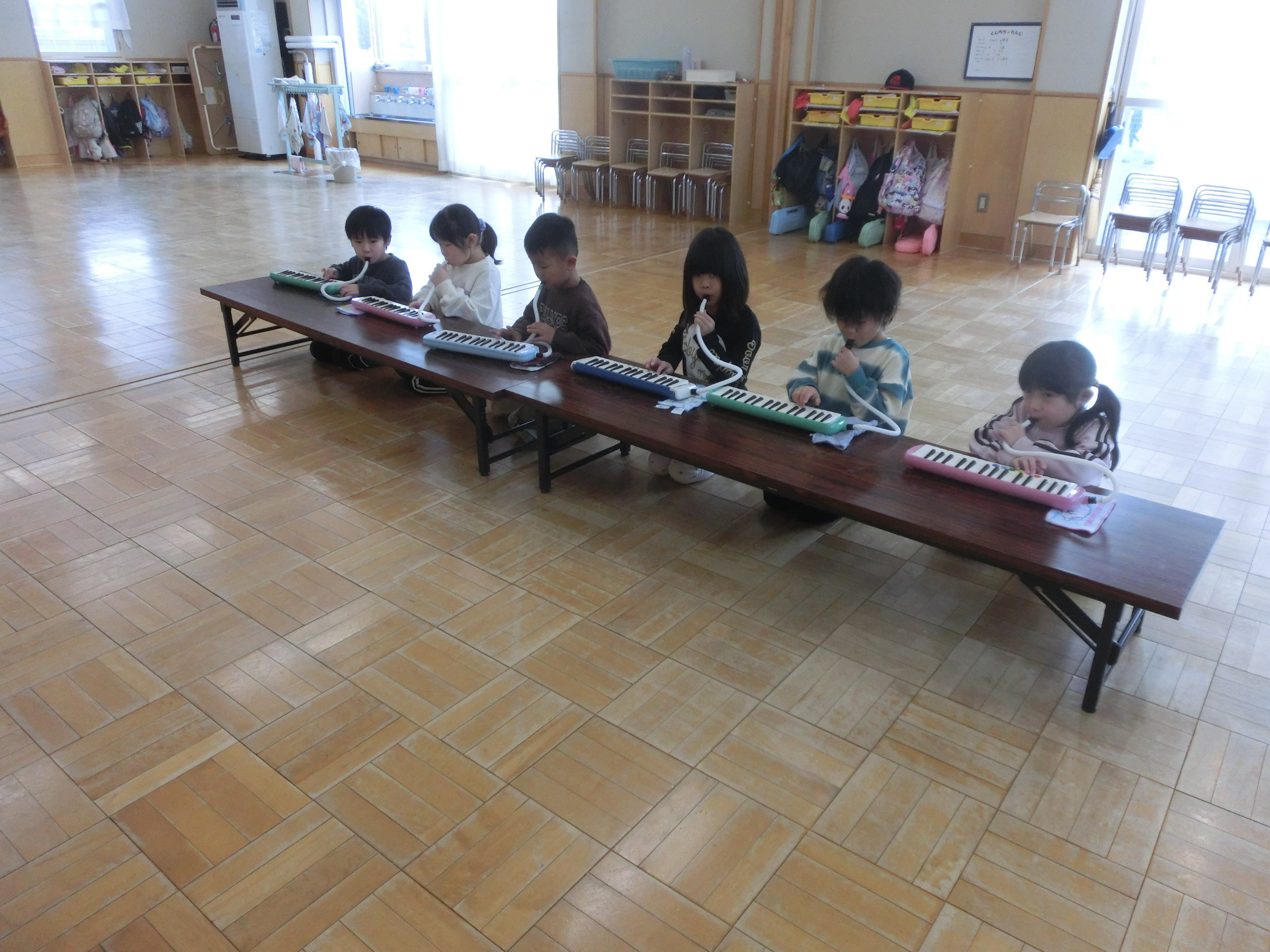 くじら組はメロディオンをしました。素敵な音色が響いていましたよ。製作の後は縄跳び遊びもしました。