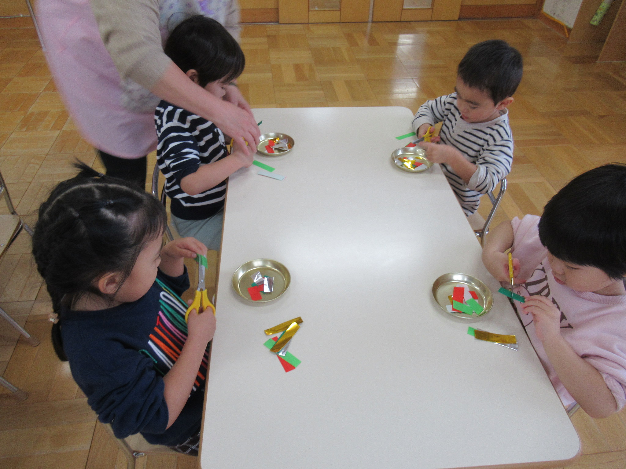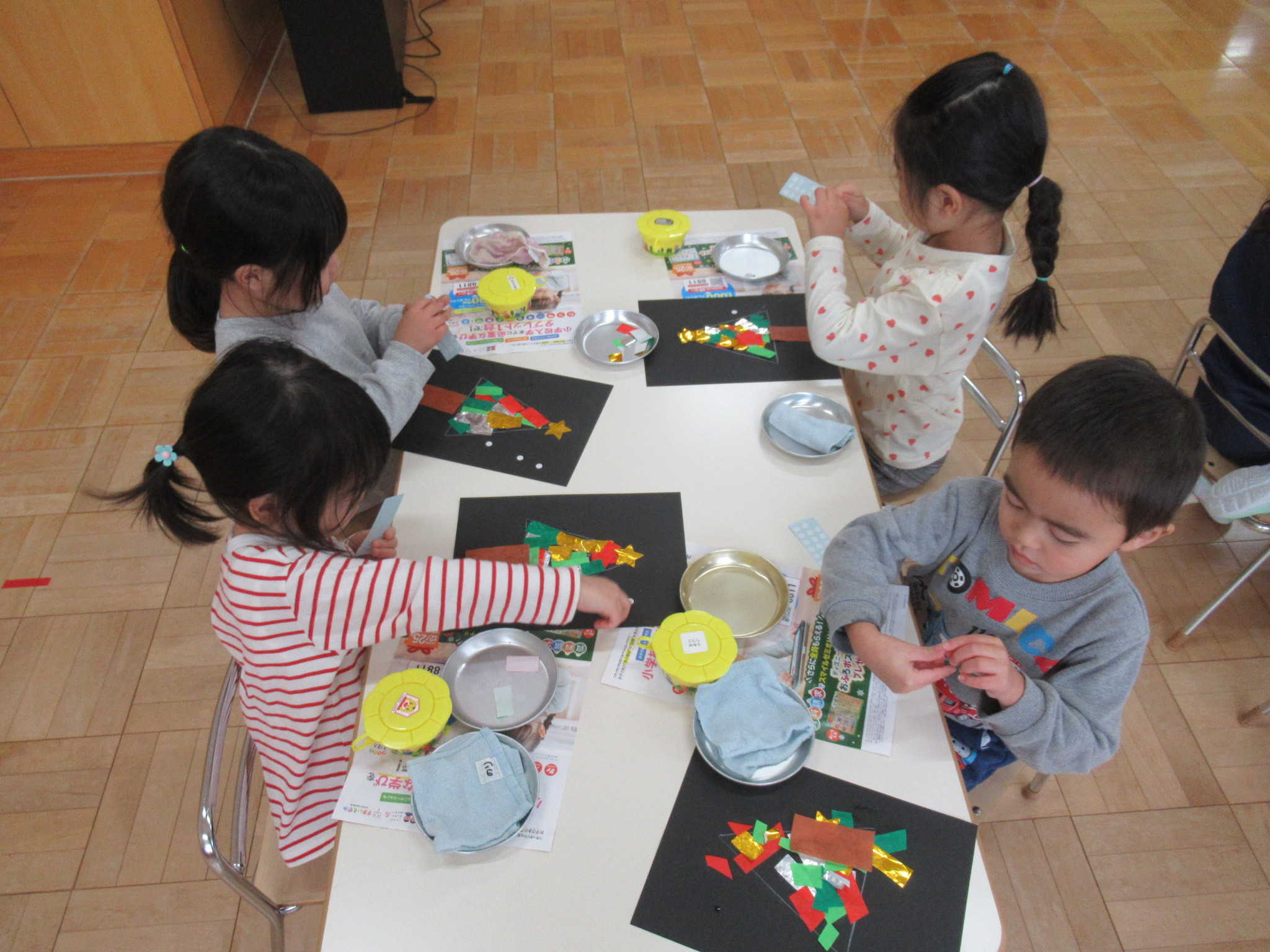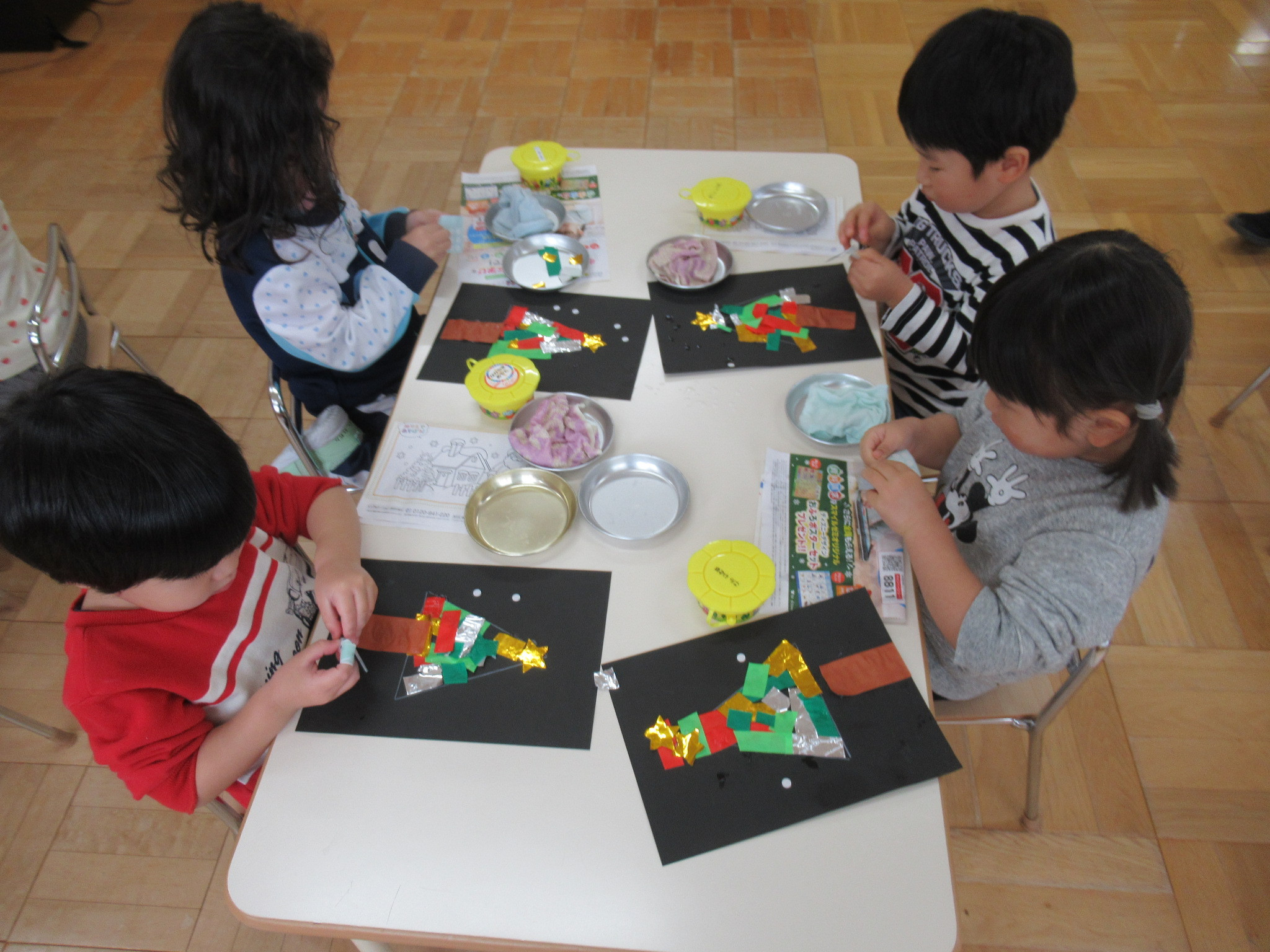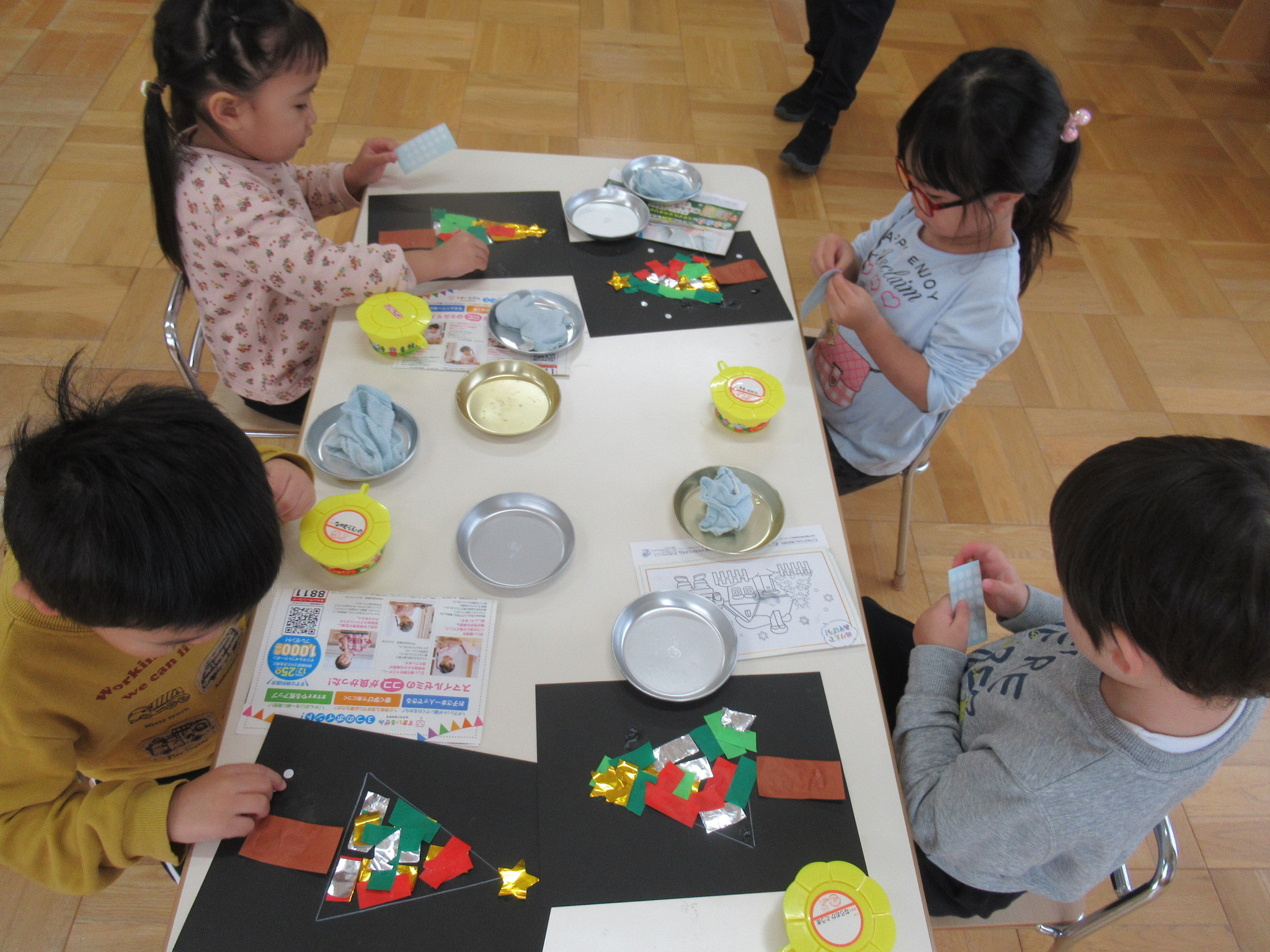 らっこ組は、可愛い“クリスマスツリー”が完成しました。いるか組は、“ゲーム”をして遊びましたよ。