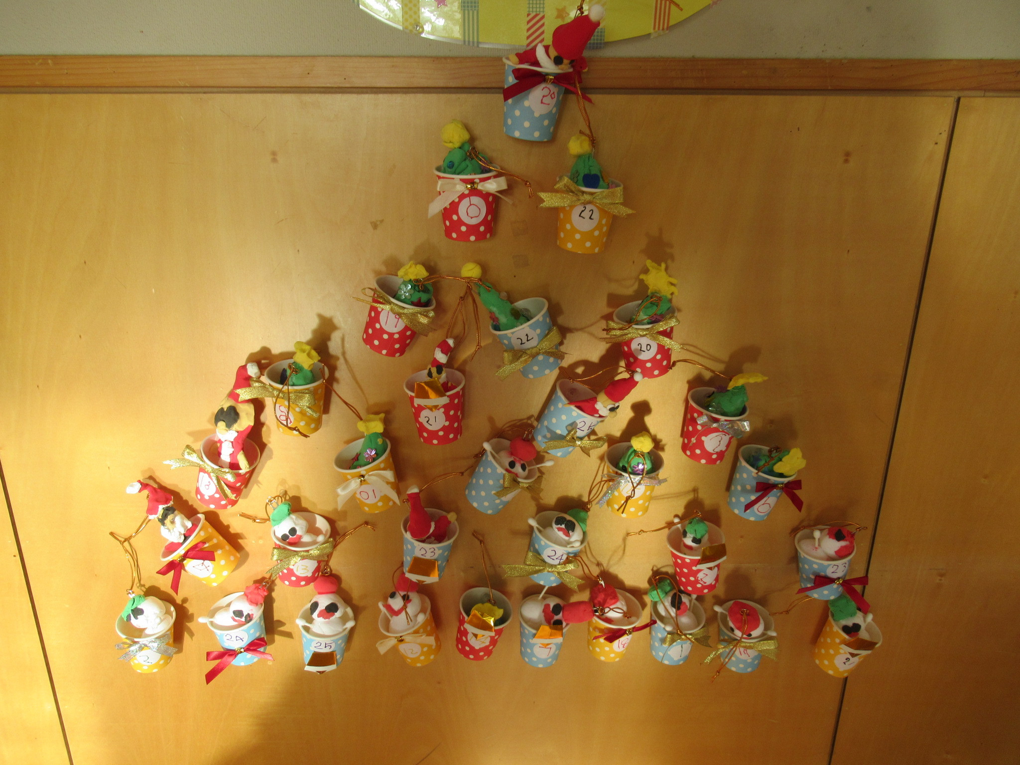 来週から12月です。子どもたちが作ったアドベントカレンダーを飾りました。