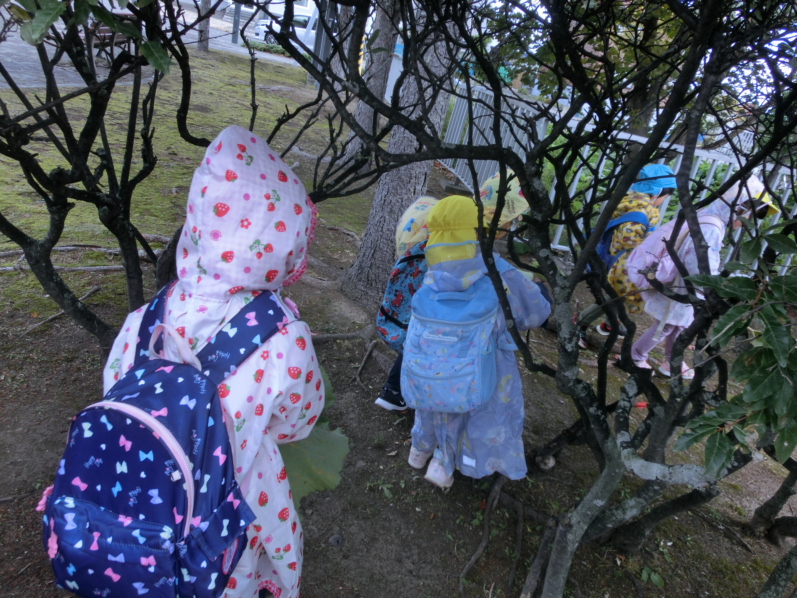 今日は“寄り道散歩”に出かけました。大きな水たまりは、“よけよけの術”で通り抜けました。