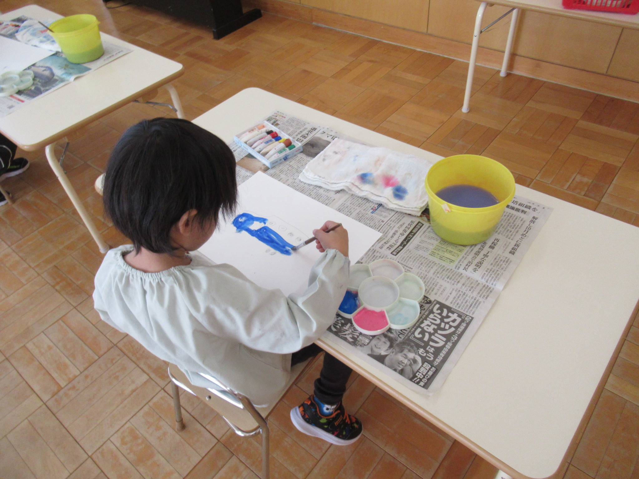 楽しかった“バス遠足の絵”を描きました。全部が楽しかったようで、どこの場面を描こうか悩んでいましたが、描く絵が決まるとスラスラと描き始めました。