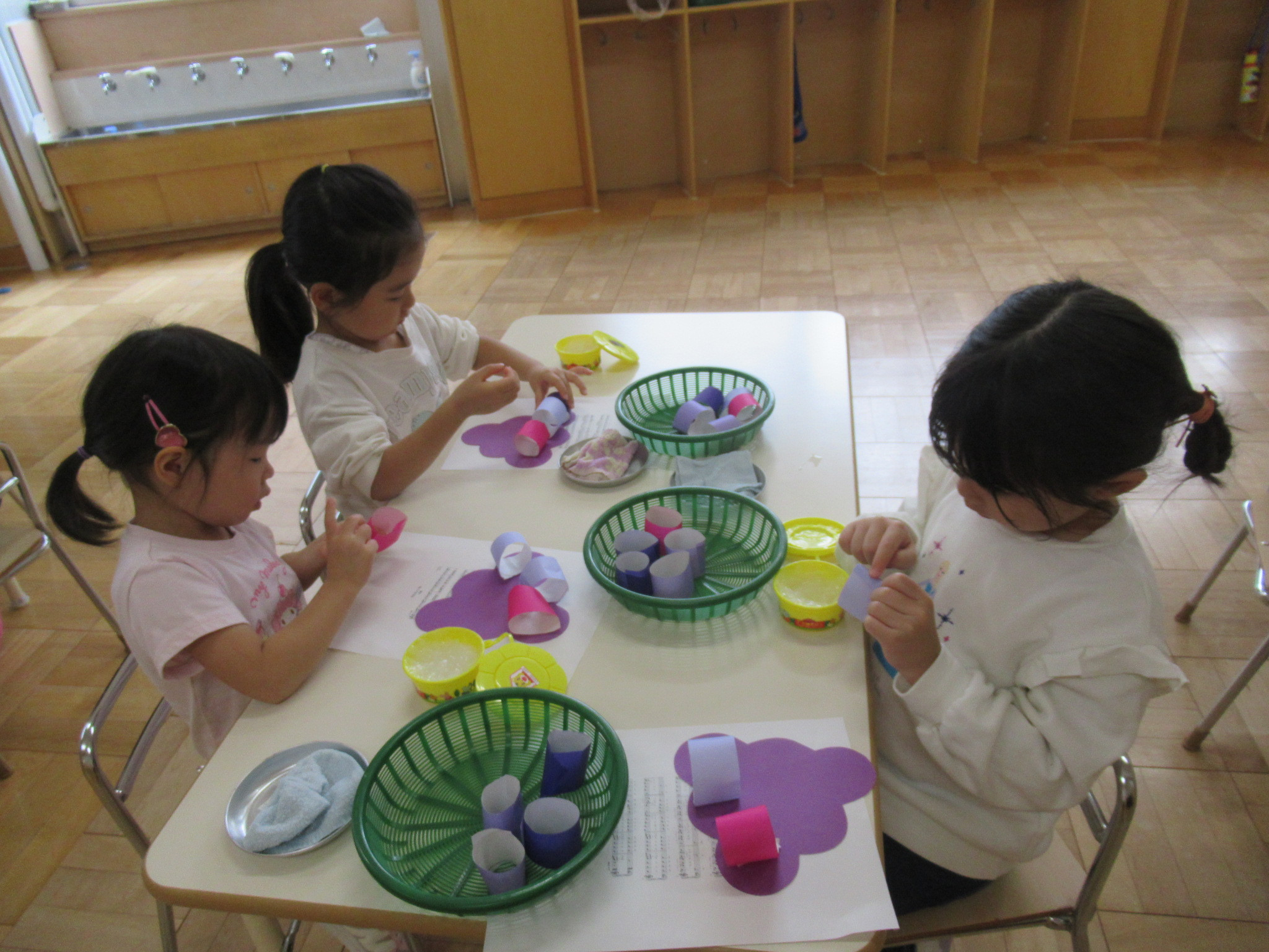 らっこ・ぺんぎん組はぶどうの製作が完成しました。美味しそうなぶどうができましたよ。