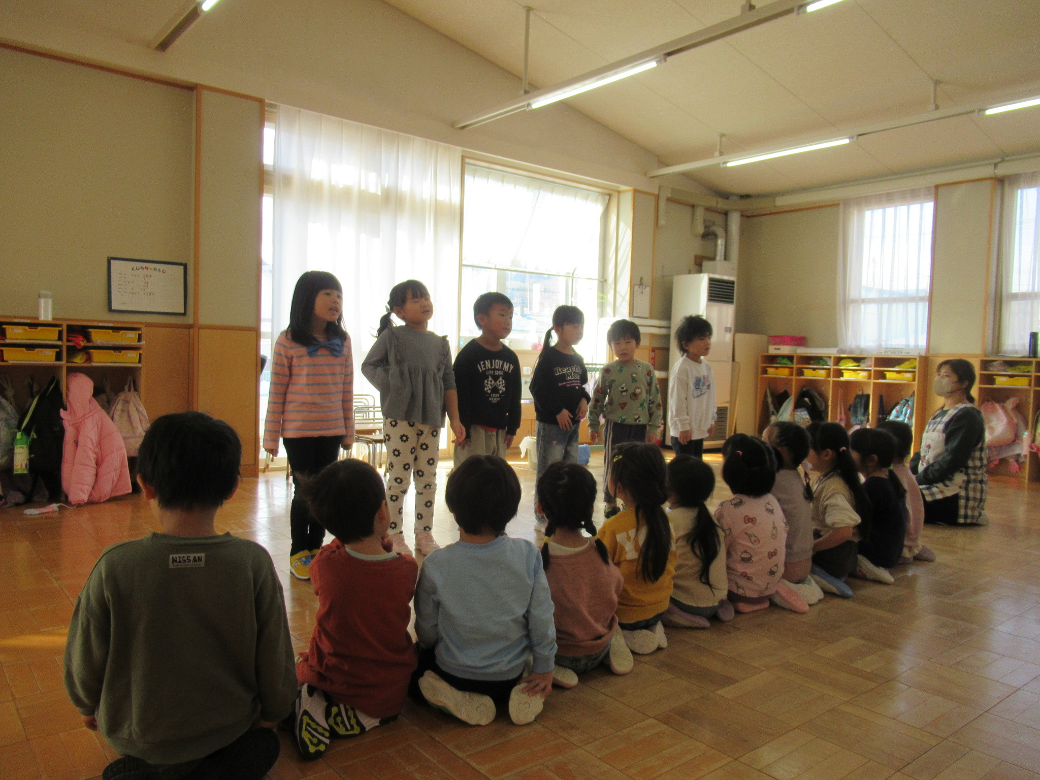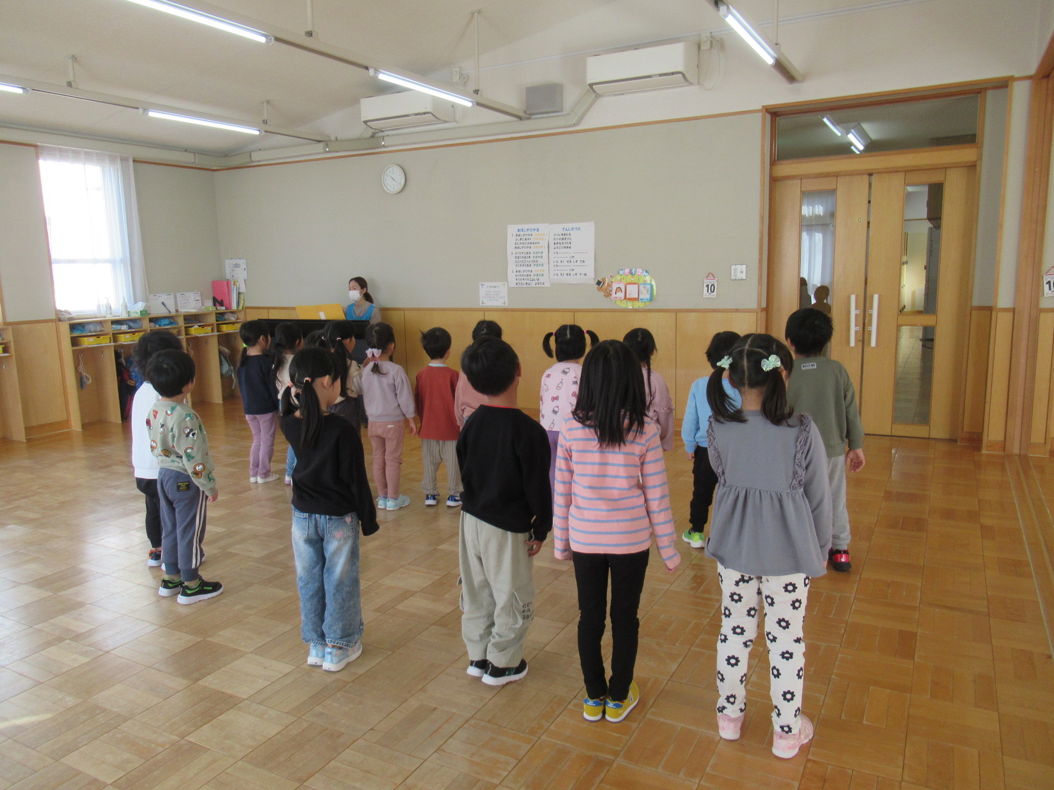 新しい聖歌の続きを歌いました。素敵なくじら組の歌を聞いて、可愛らしく歌っていましたよ。少し長めのうたなので続きはまた、明日です。