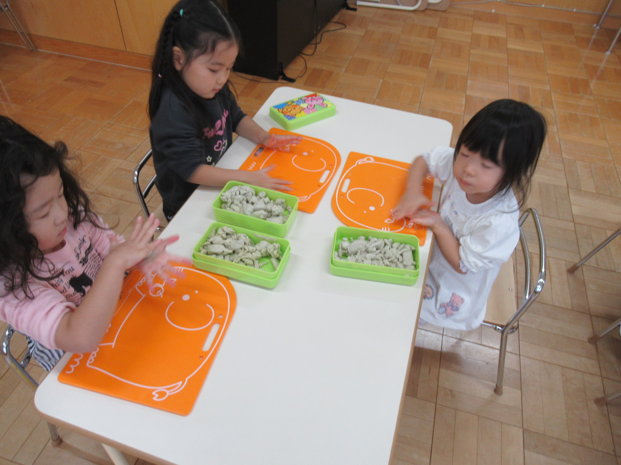 らっこ・ぺんぎん組は練習の後、長縄や粘土をしましたよ。