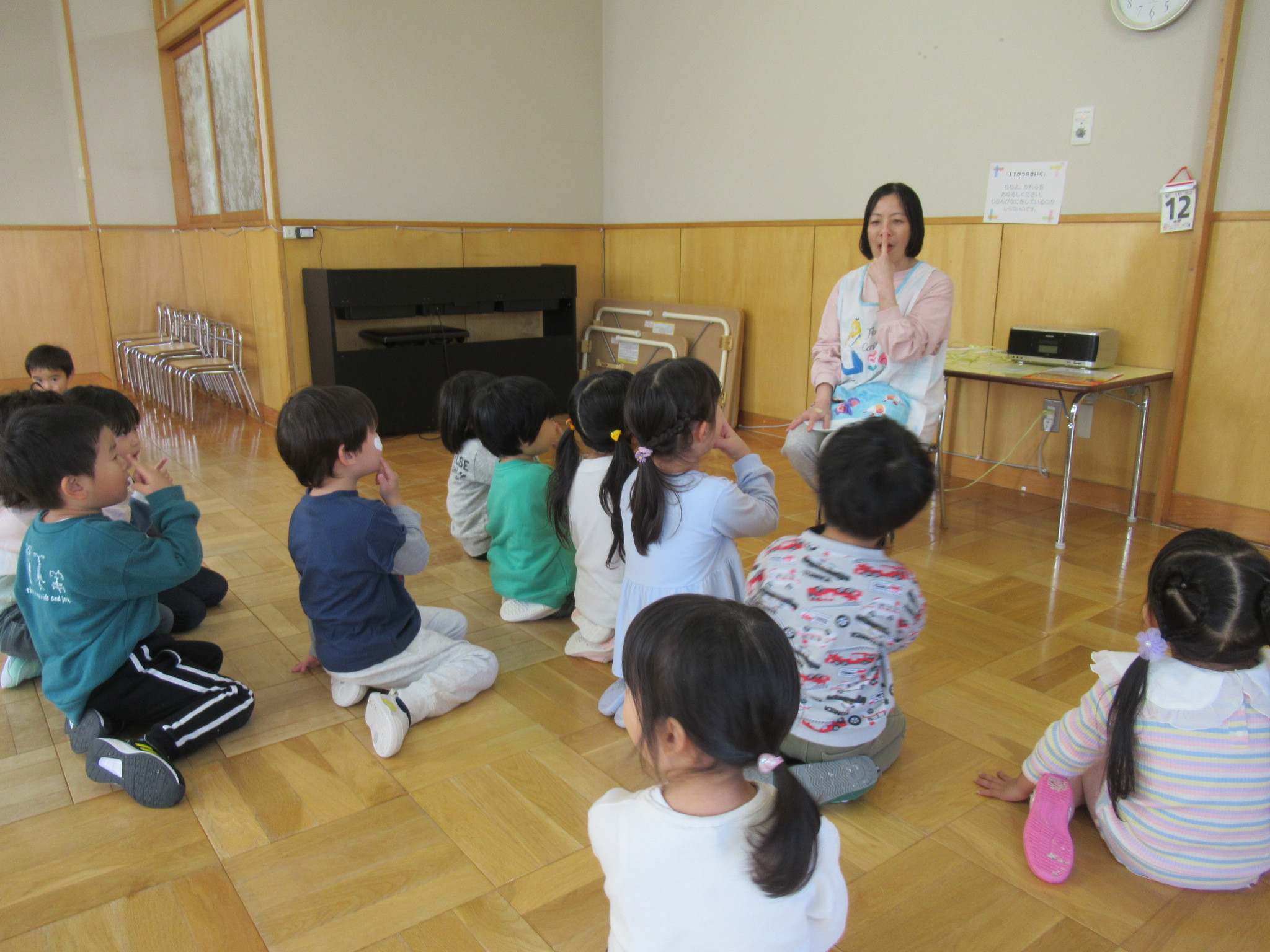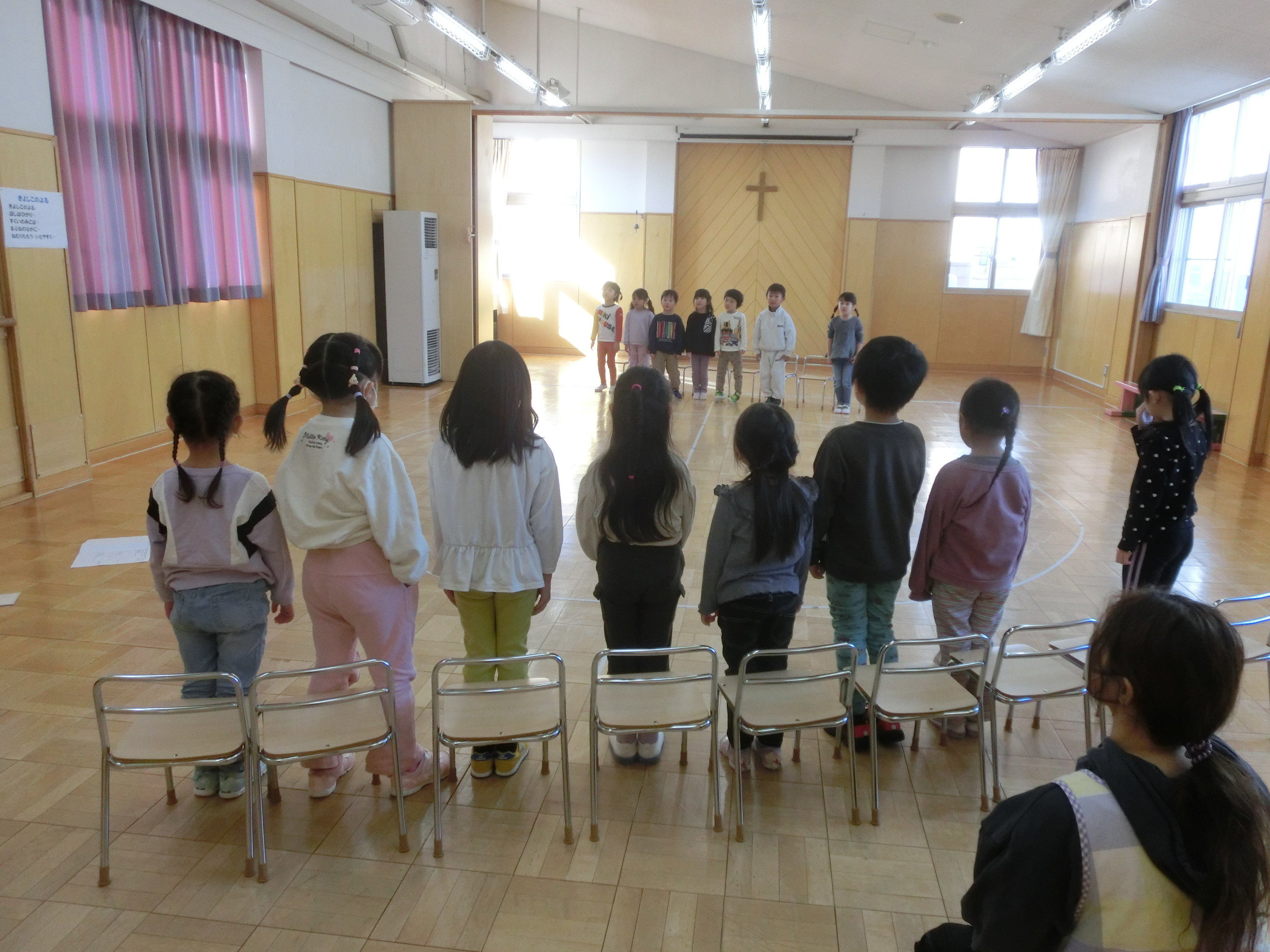 各クラス発表会の練習も頑張っています。くじら・いるか組はホールで降誕劇の練習をしましたよ。