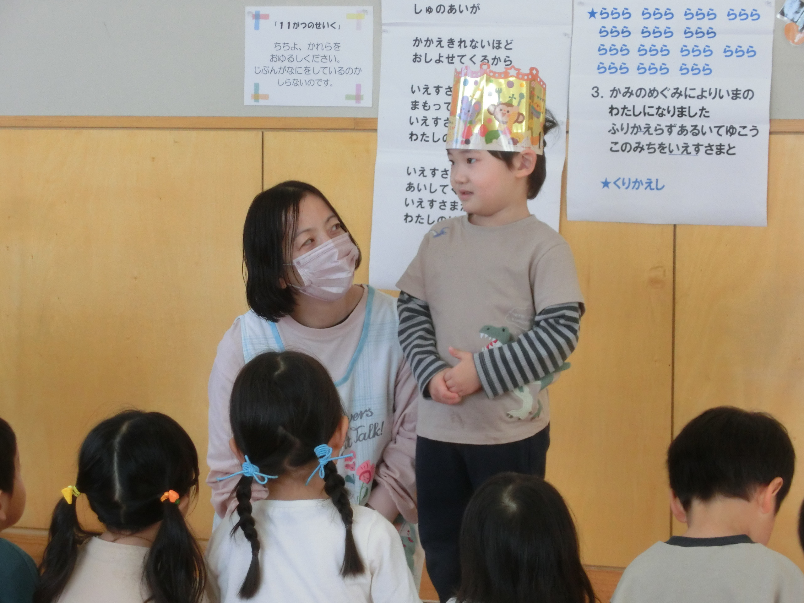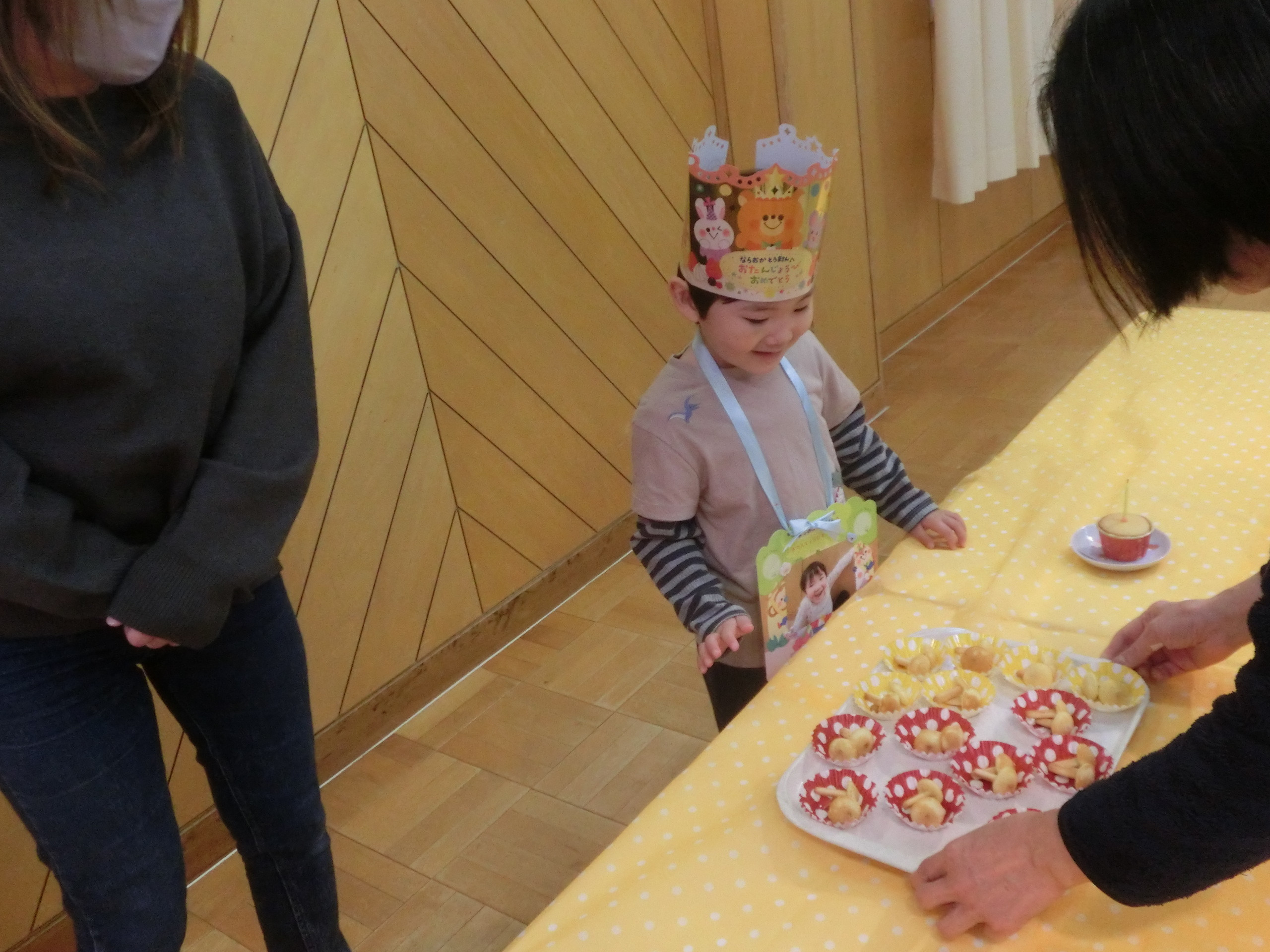 11月の誕生会でした。朝から楽しみにしていたお友だちをお祝いしましたよ。