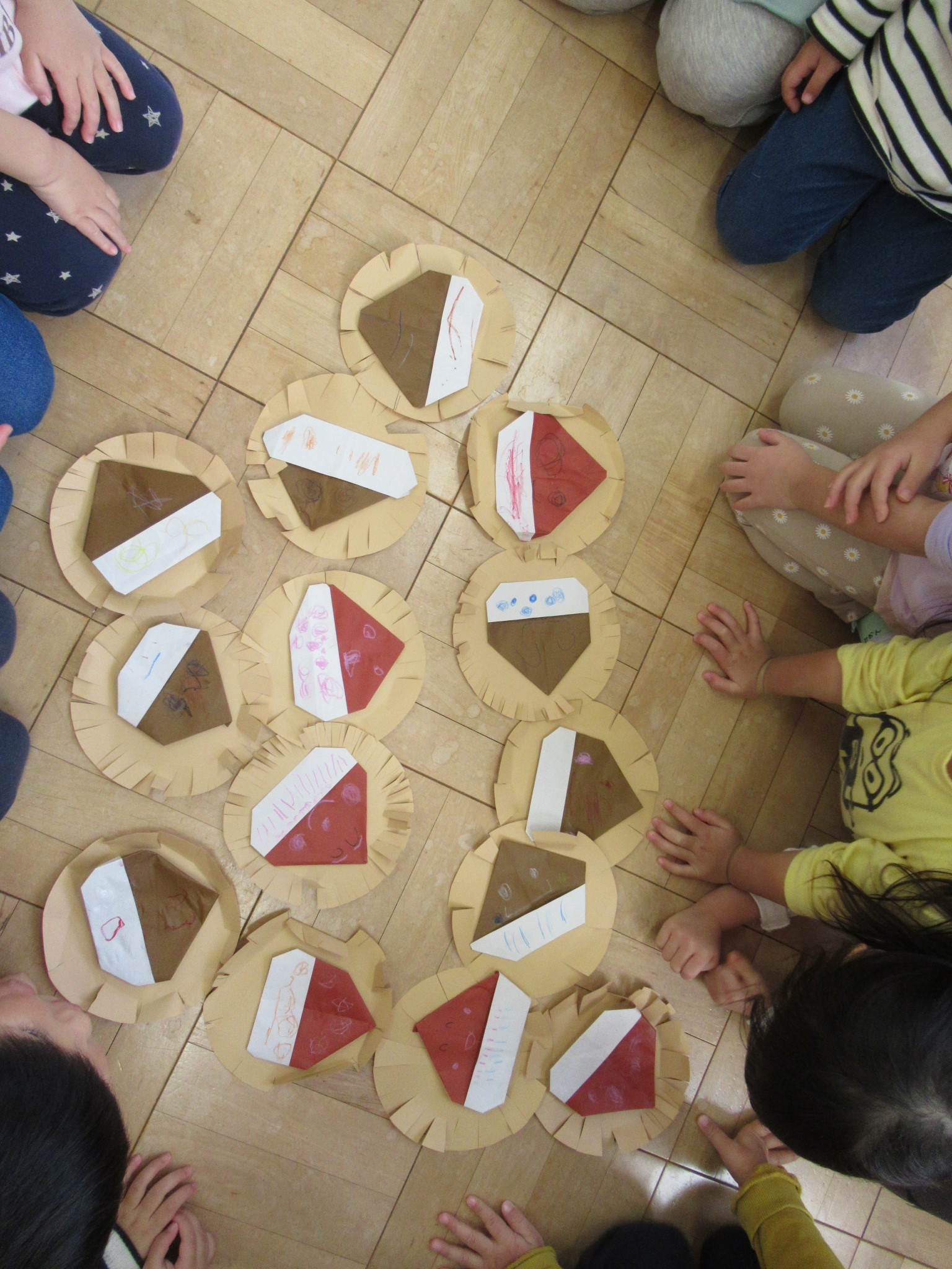 今日も年齢別でクリスマス発表会の練習です。らっこ組は“くり“の製作が完成しました。