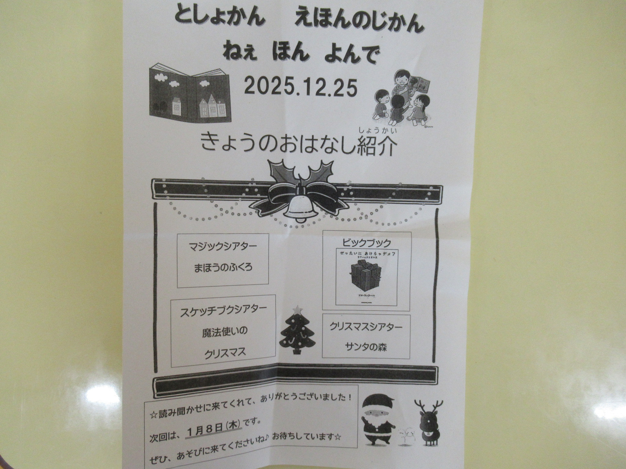 図書館ではクリスマススペシャルの読み聞かせがありました。