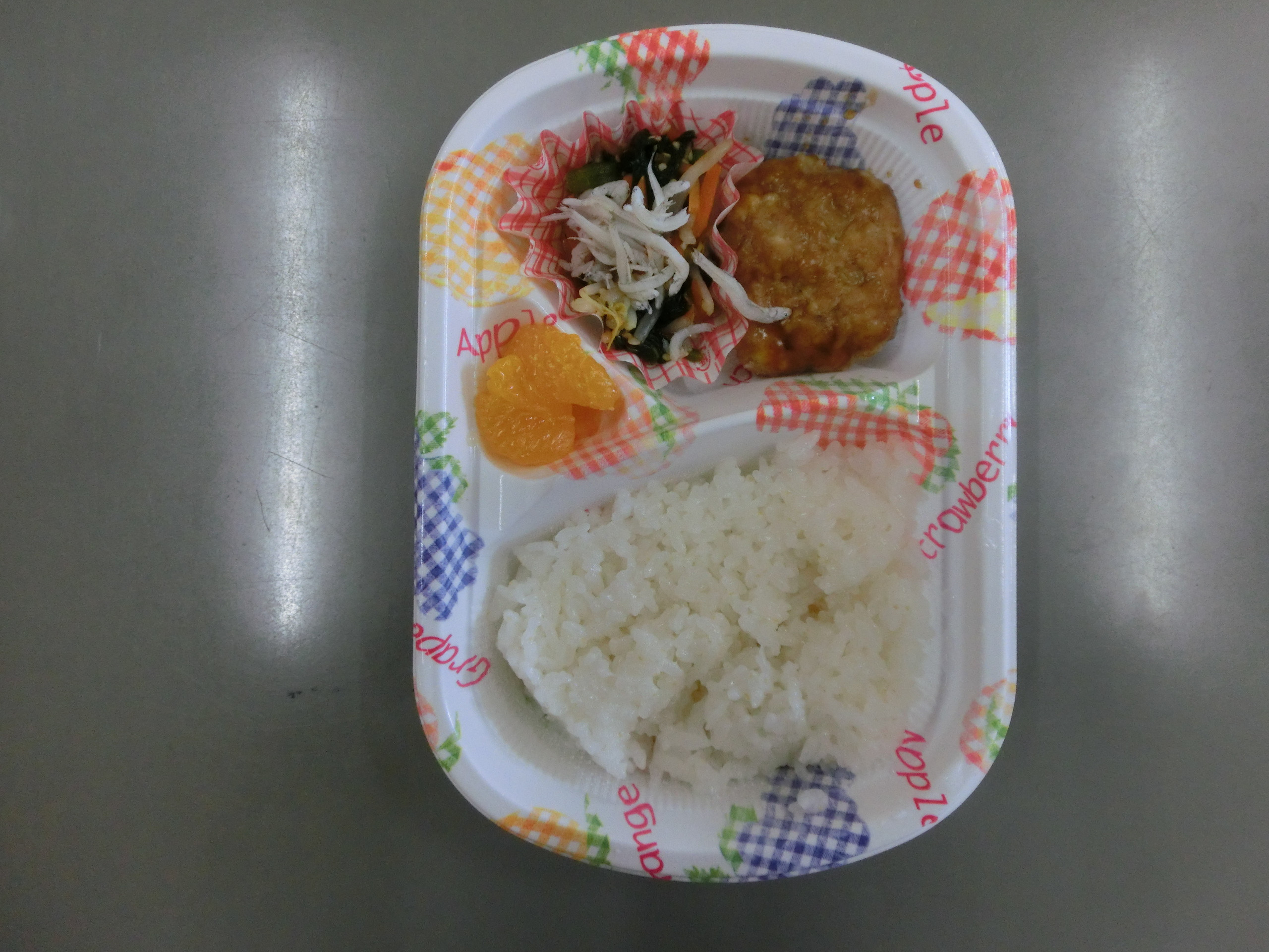 ごはん 豆腐ハンバーグ 小松菜ともやしのごまドレ くだもの(みかん缶)
