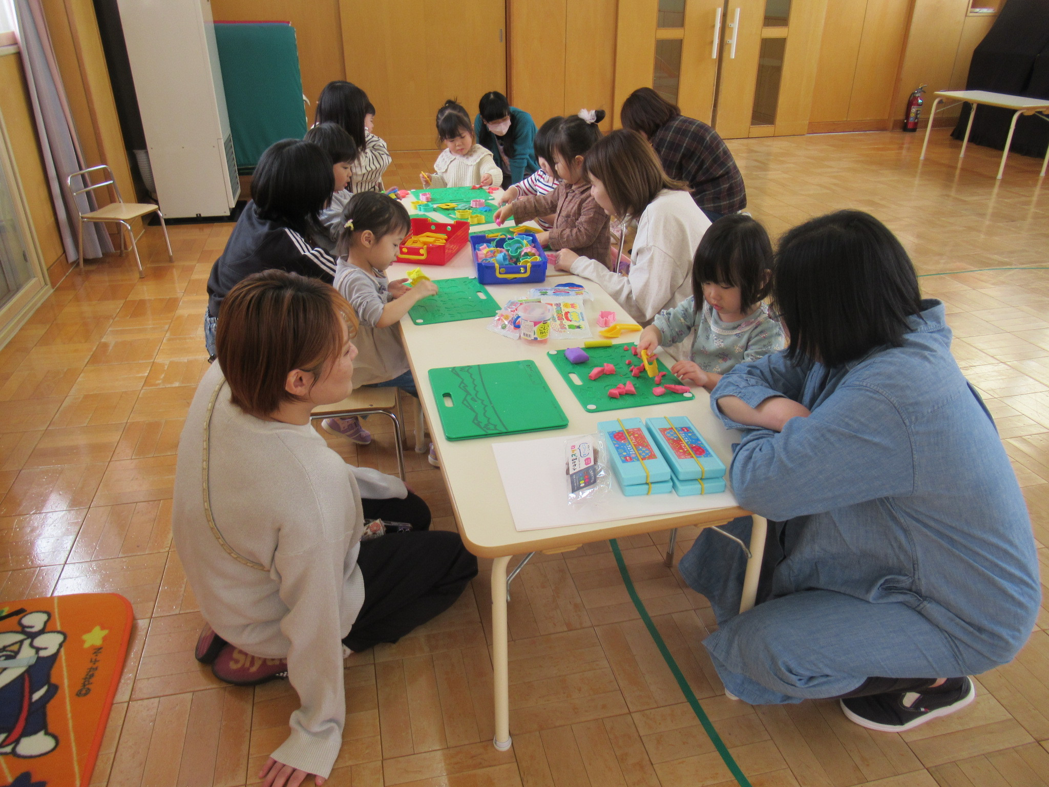 6人のお友だちが来てくれて、みんな夢中になって粘土あそびを楽しんでいました。