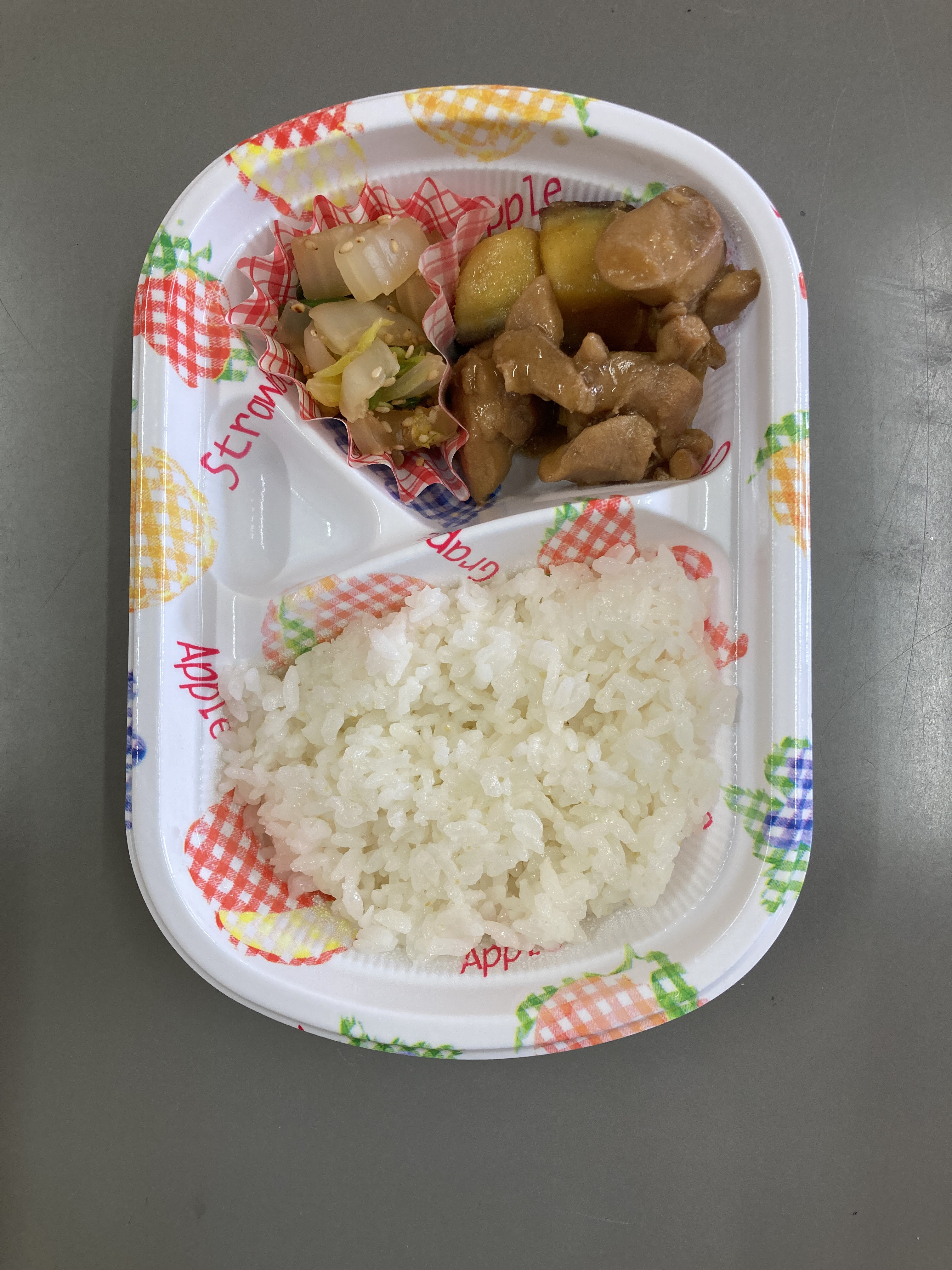 ごはん 鶏肉のからめ煮 白菜のごま和え