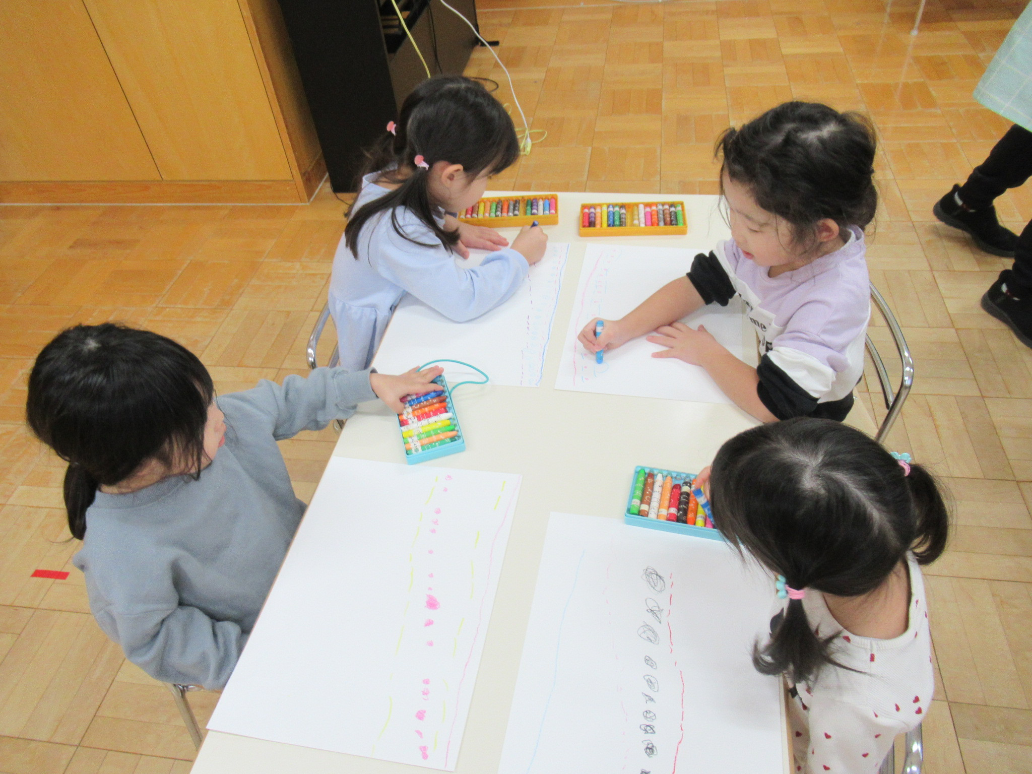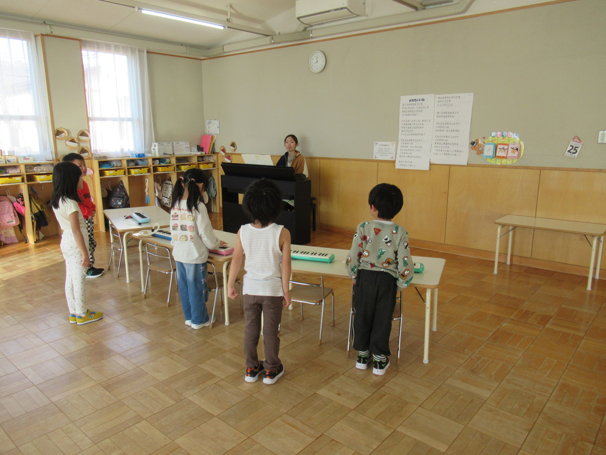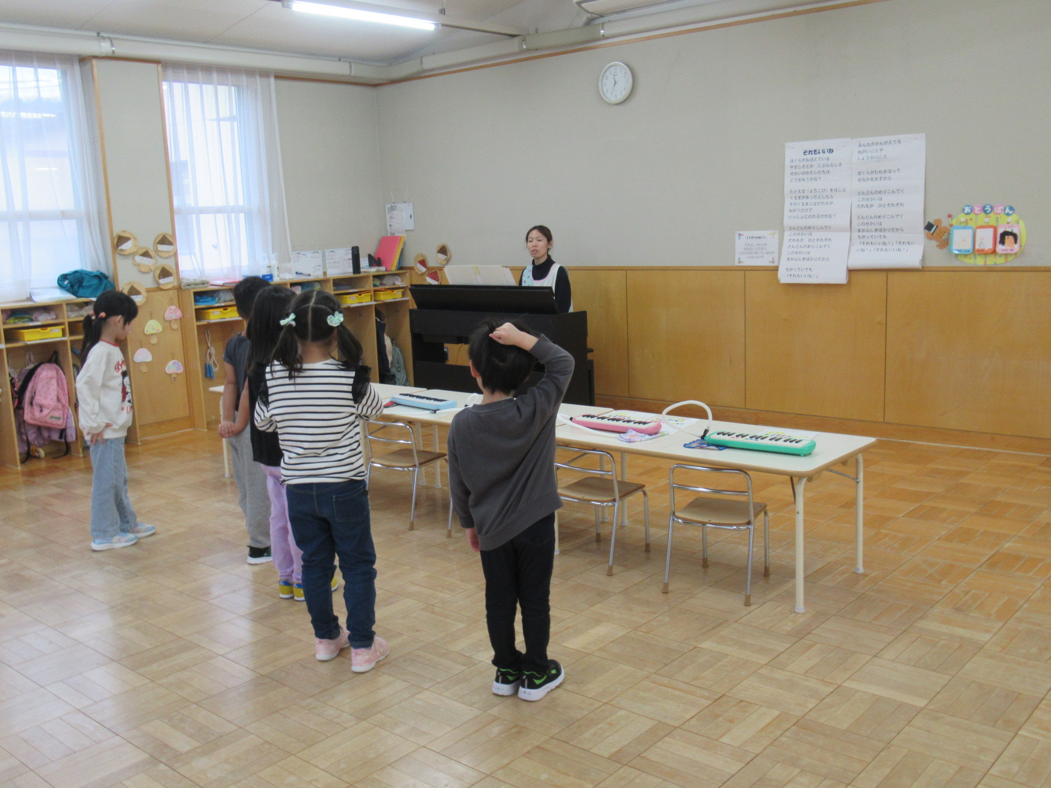 くじら組はメロディオンをしました。素敵な音色が響いていましたよ。製作の後は縄跳び遊びもしました。