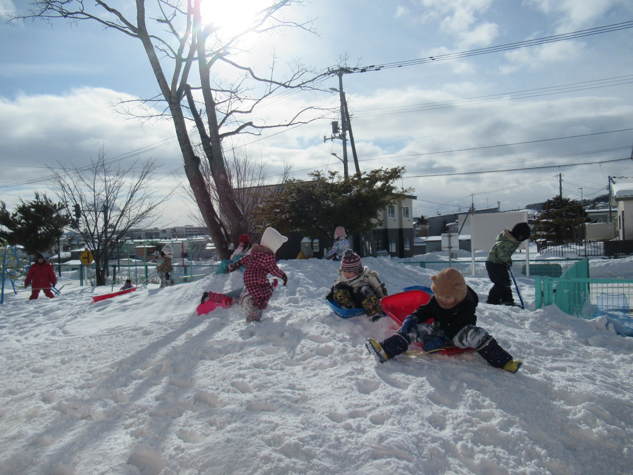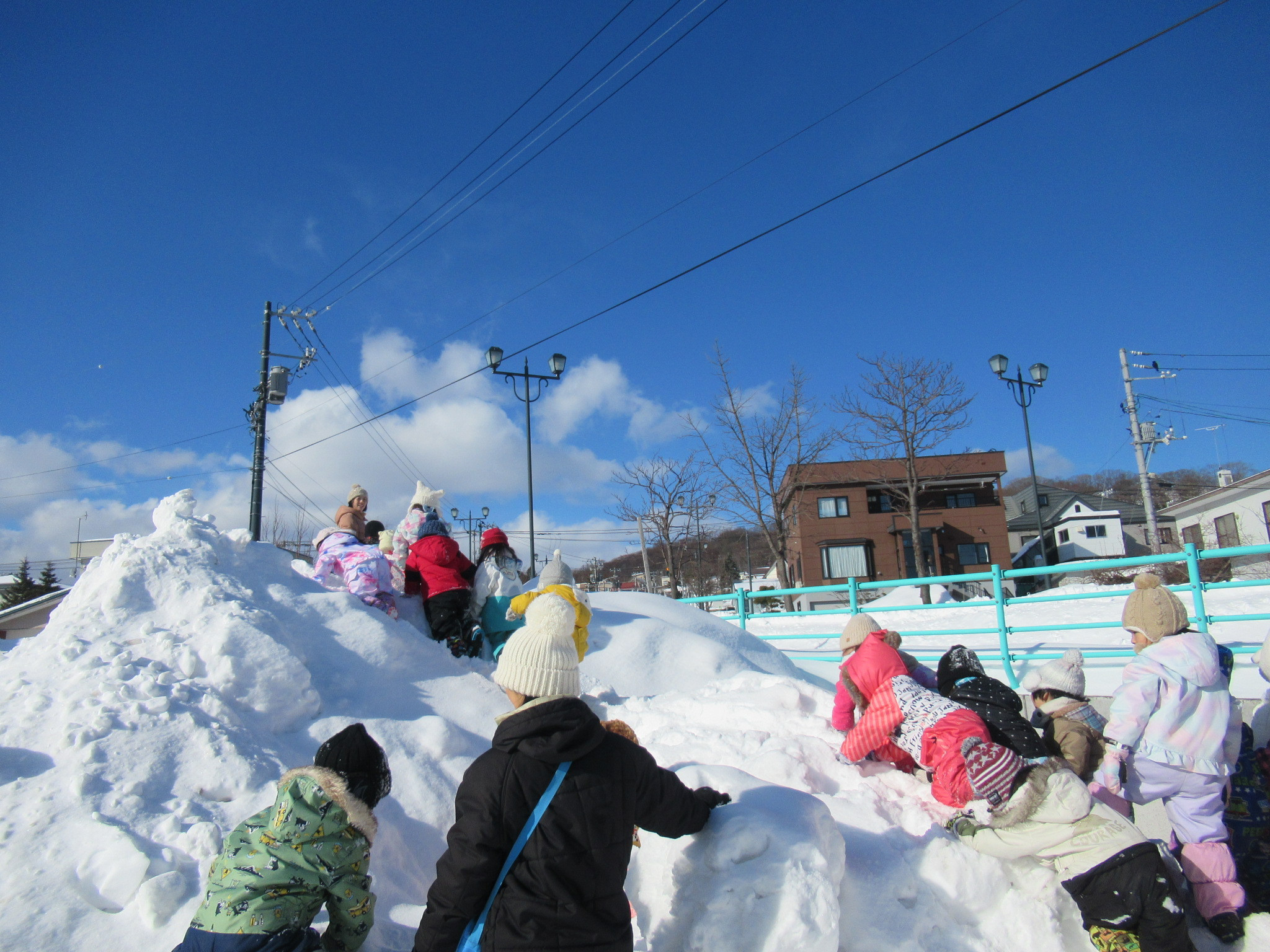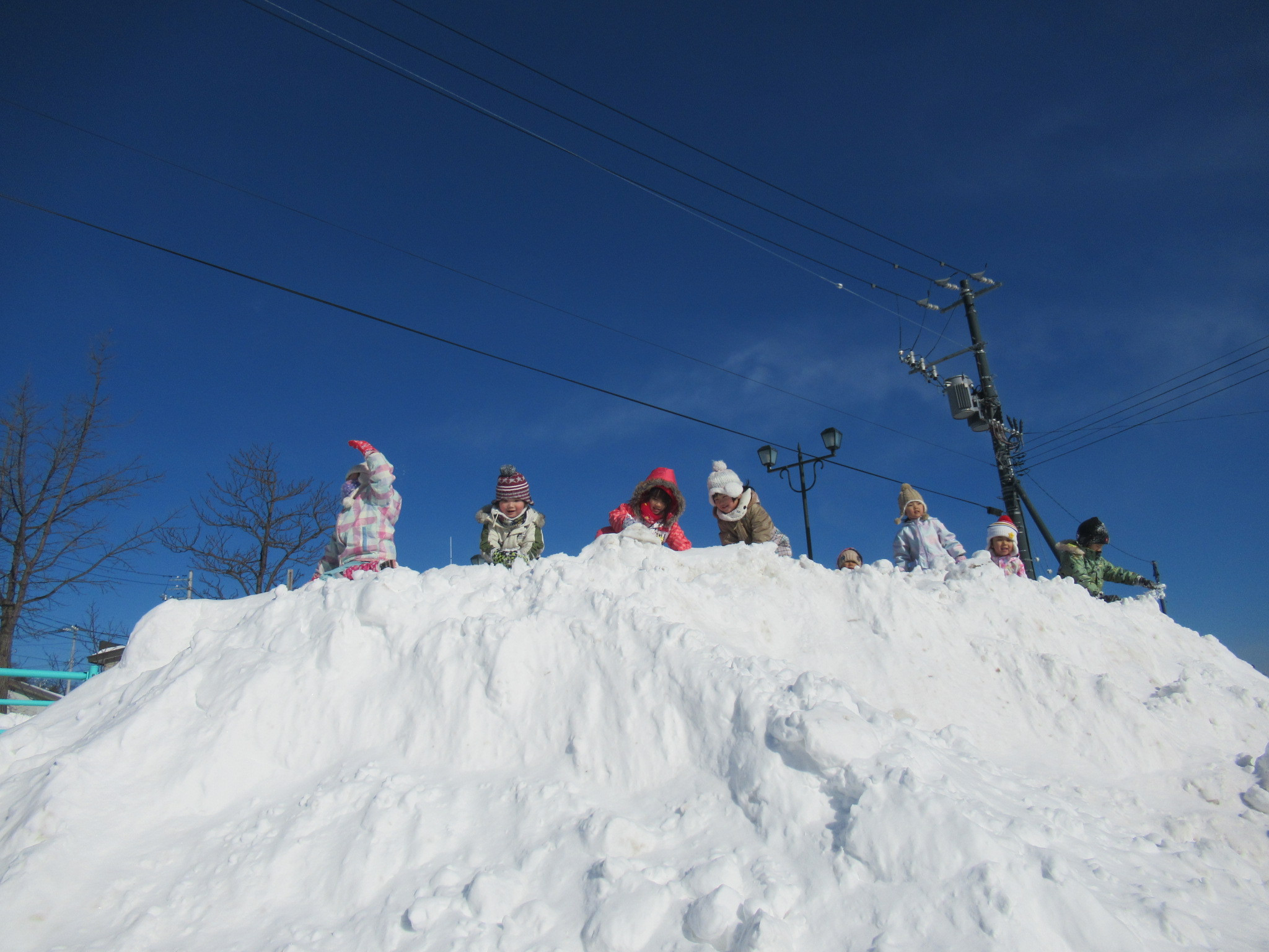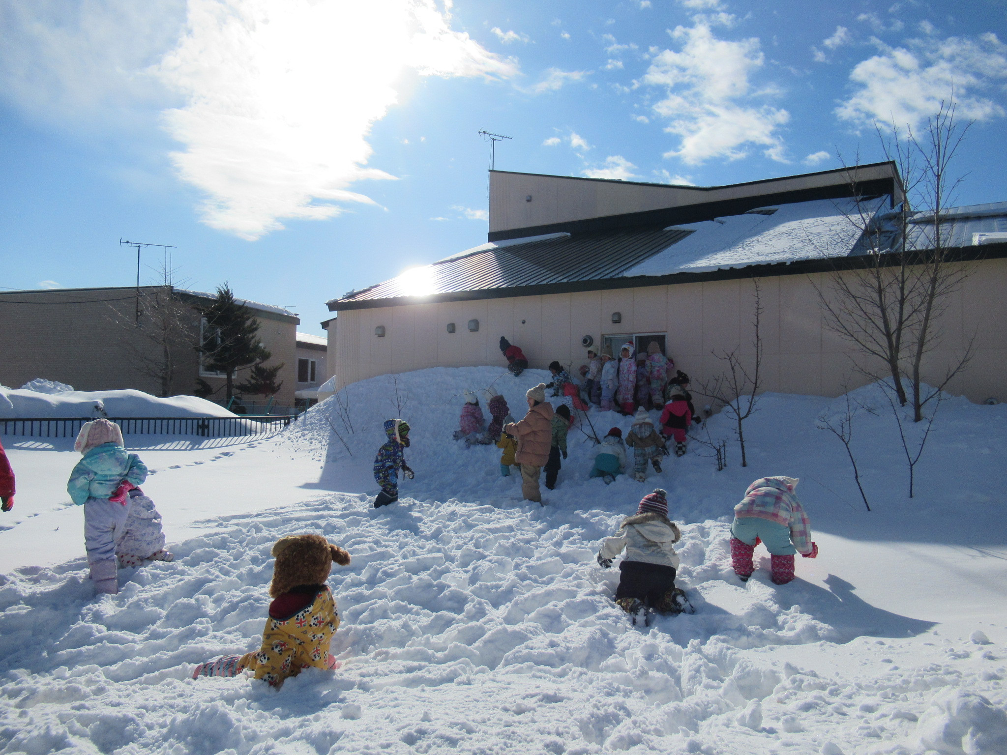 そのあとは園庭あそびです。ふかふかの雪で存分に遊びました。