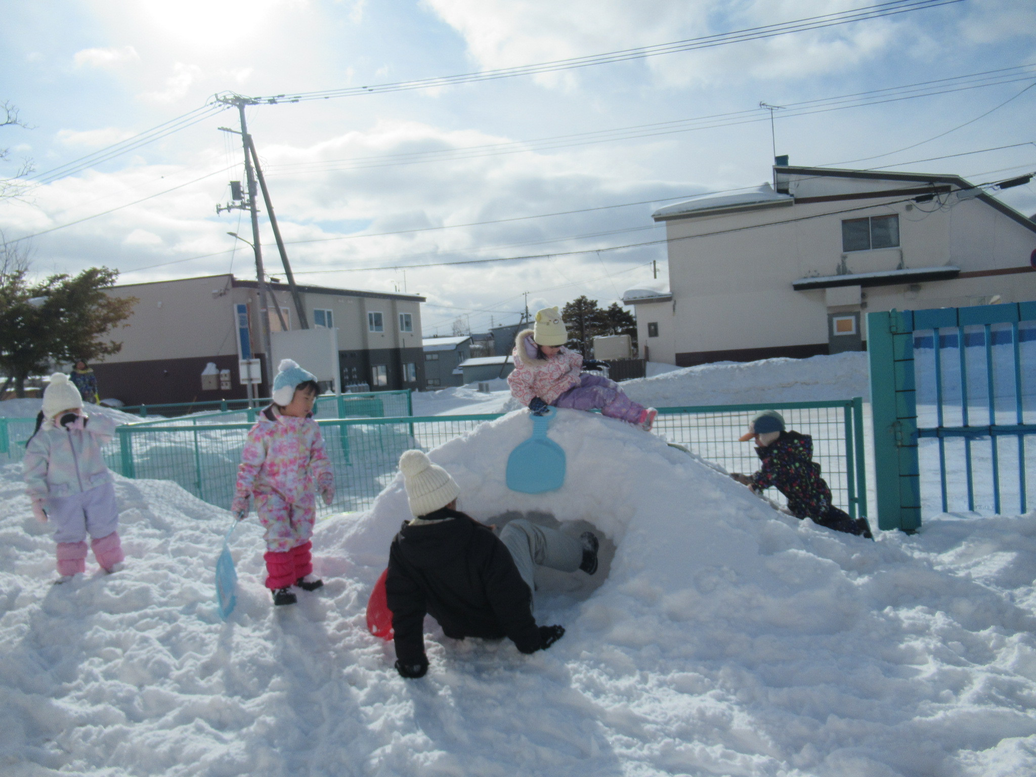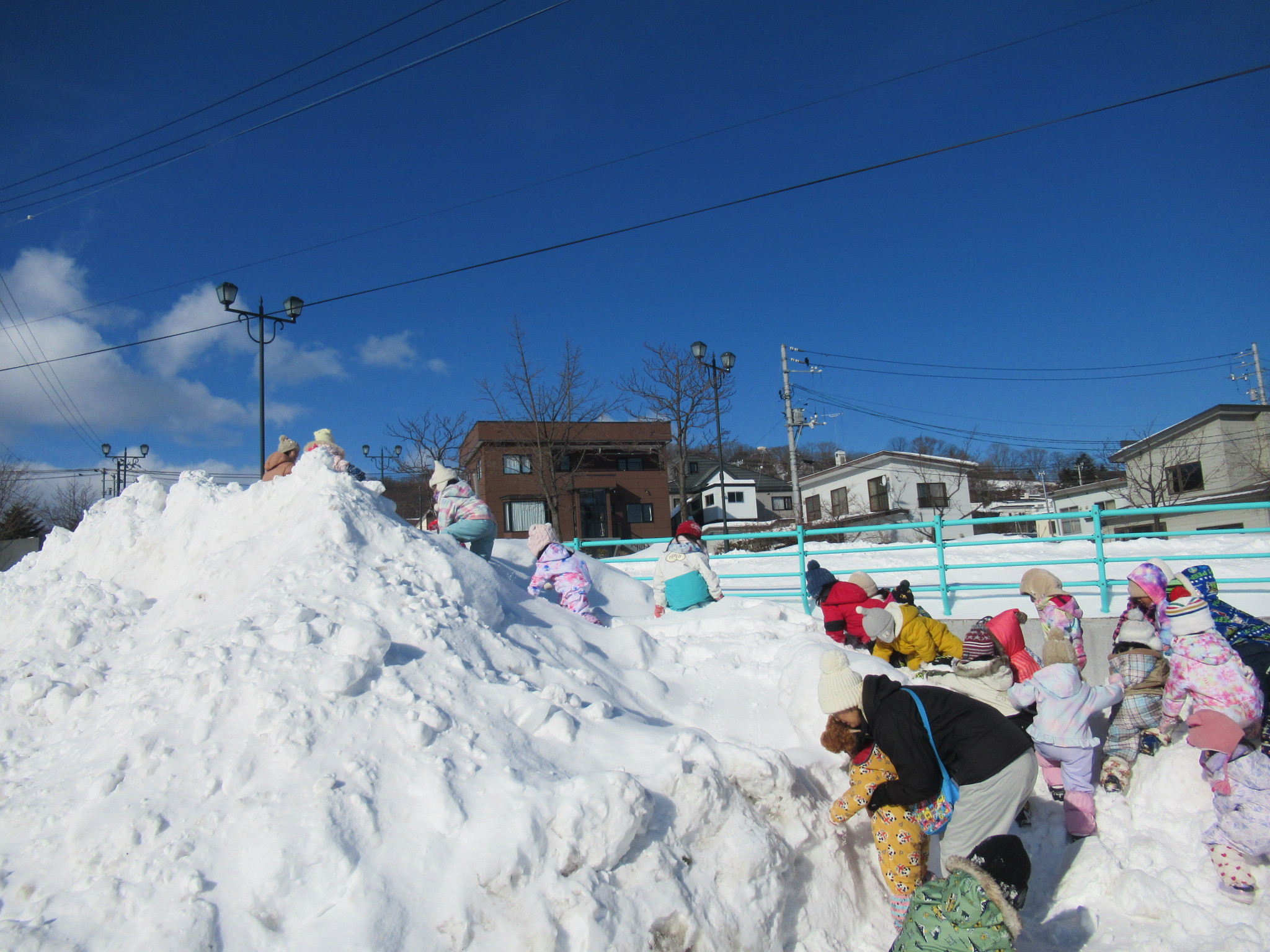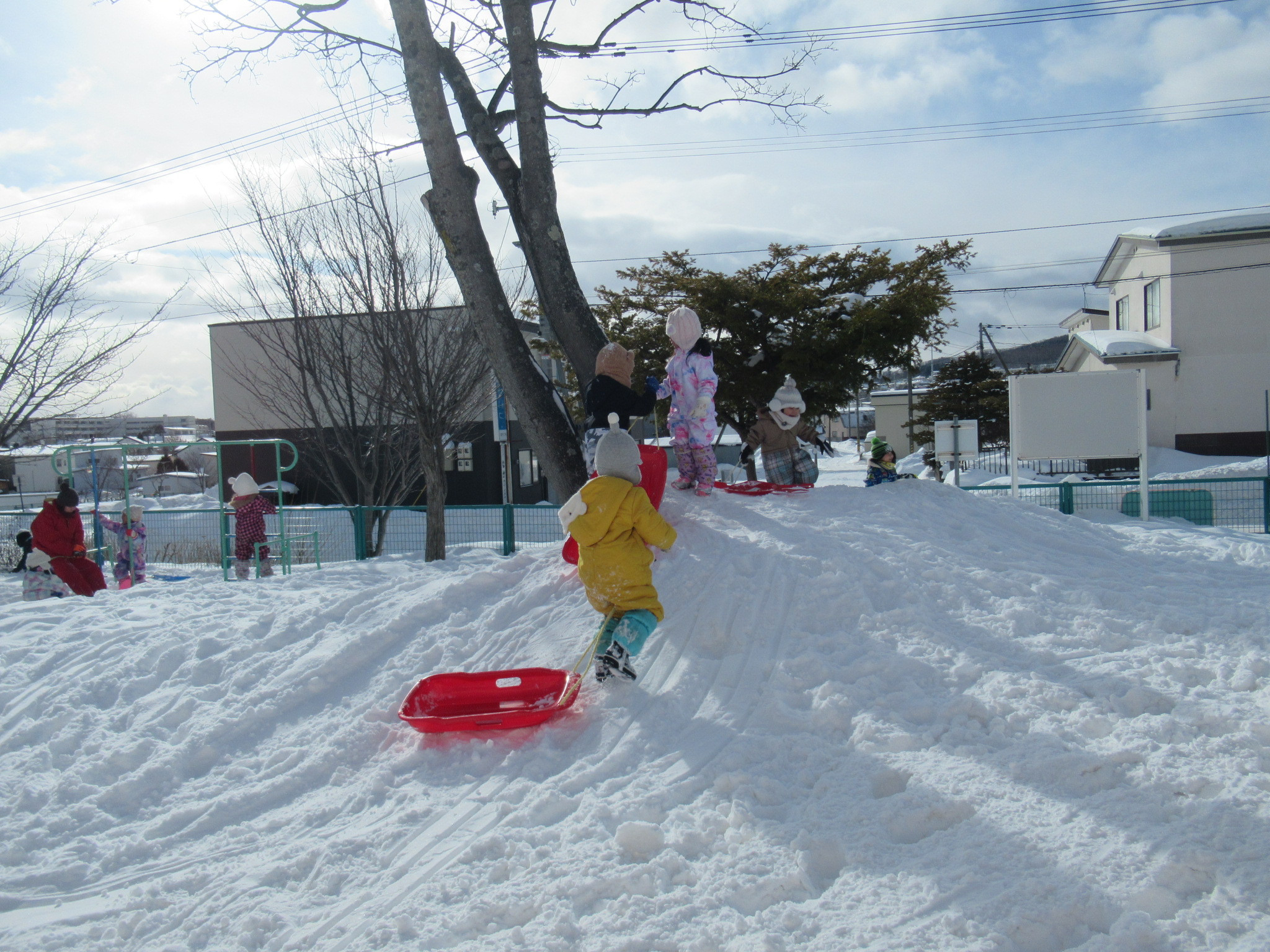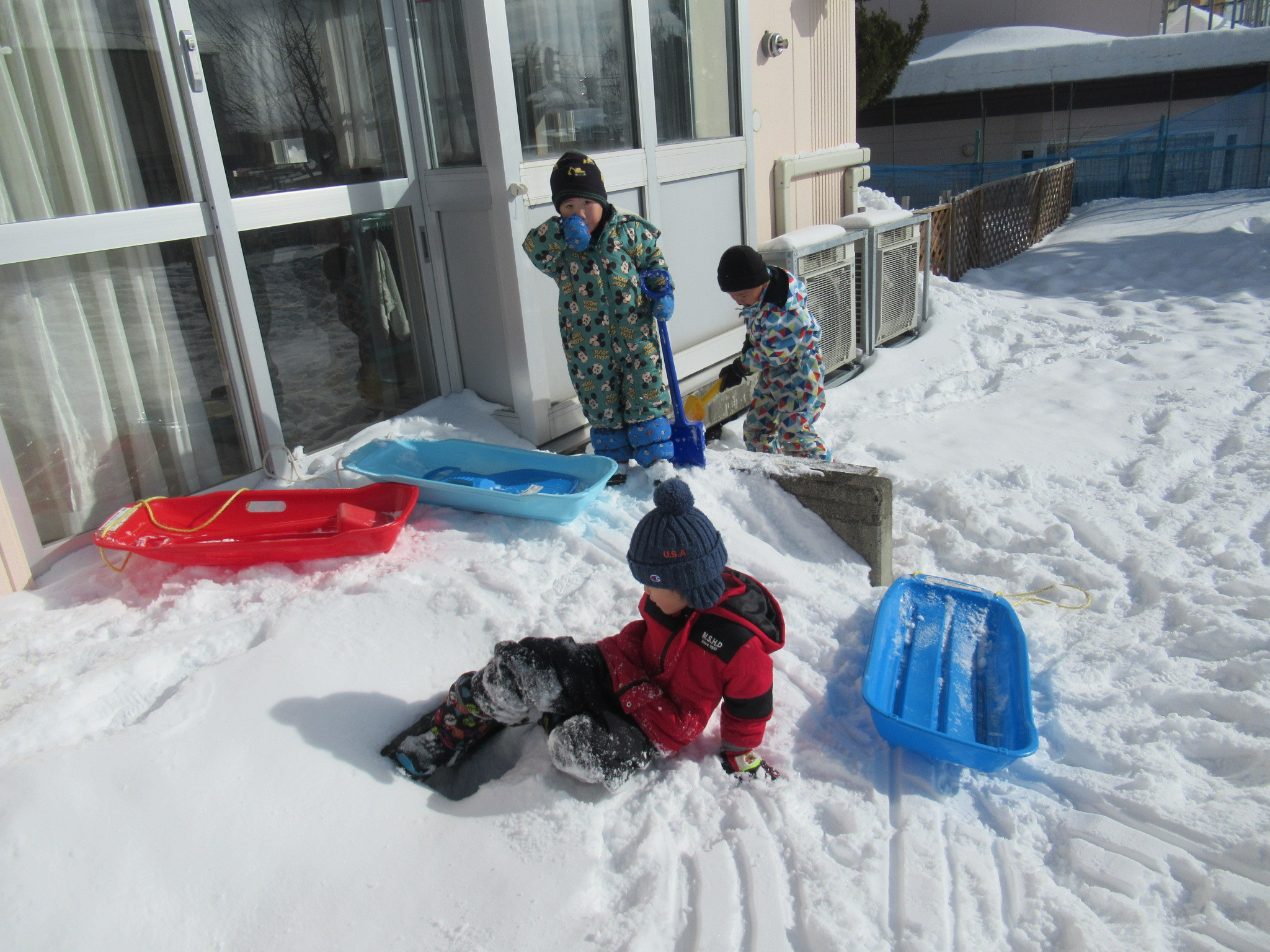 そのあとは園庭あそびです。ふかふかの雪で存分に遊びました。