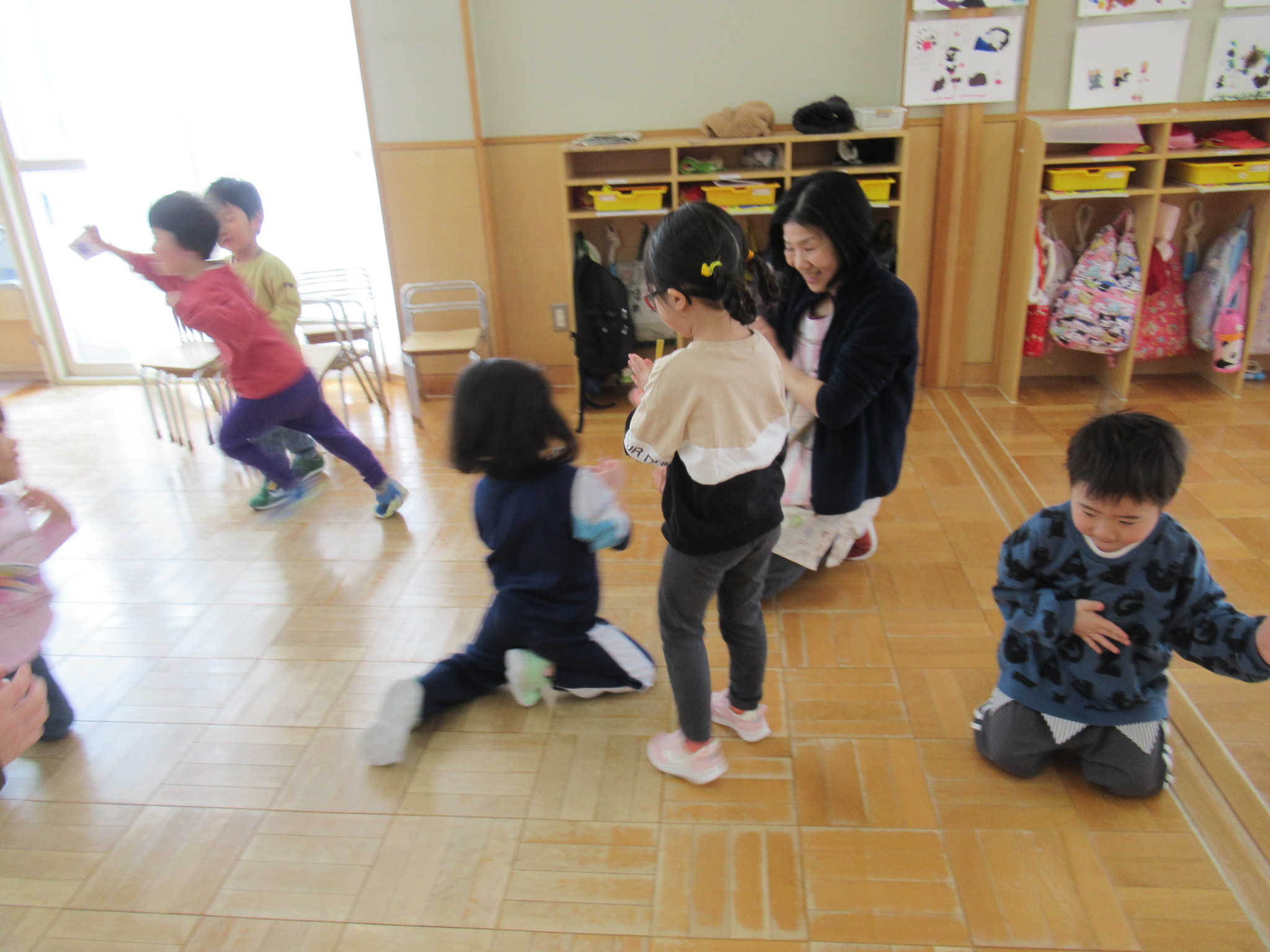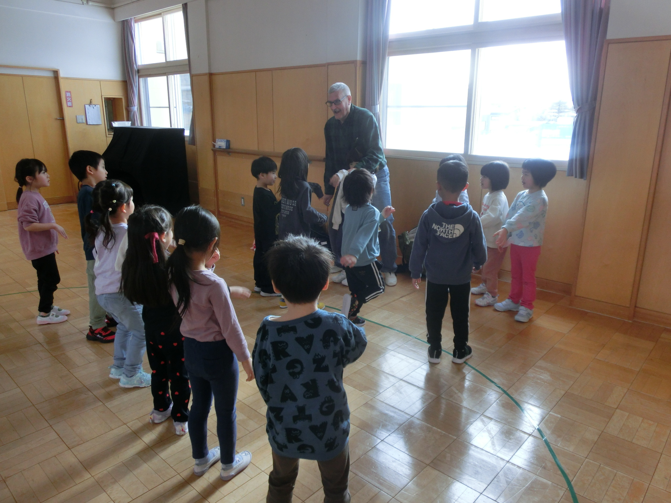 鬼さんの続きは明日行います。くじら組・いるか組は午後からジェームスと遊ぼうがありました。