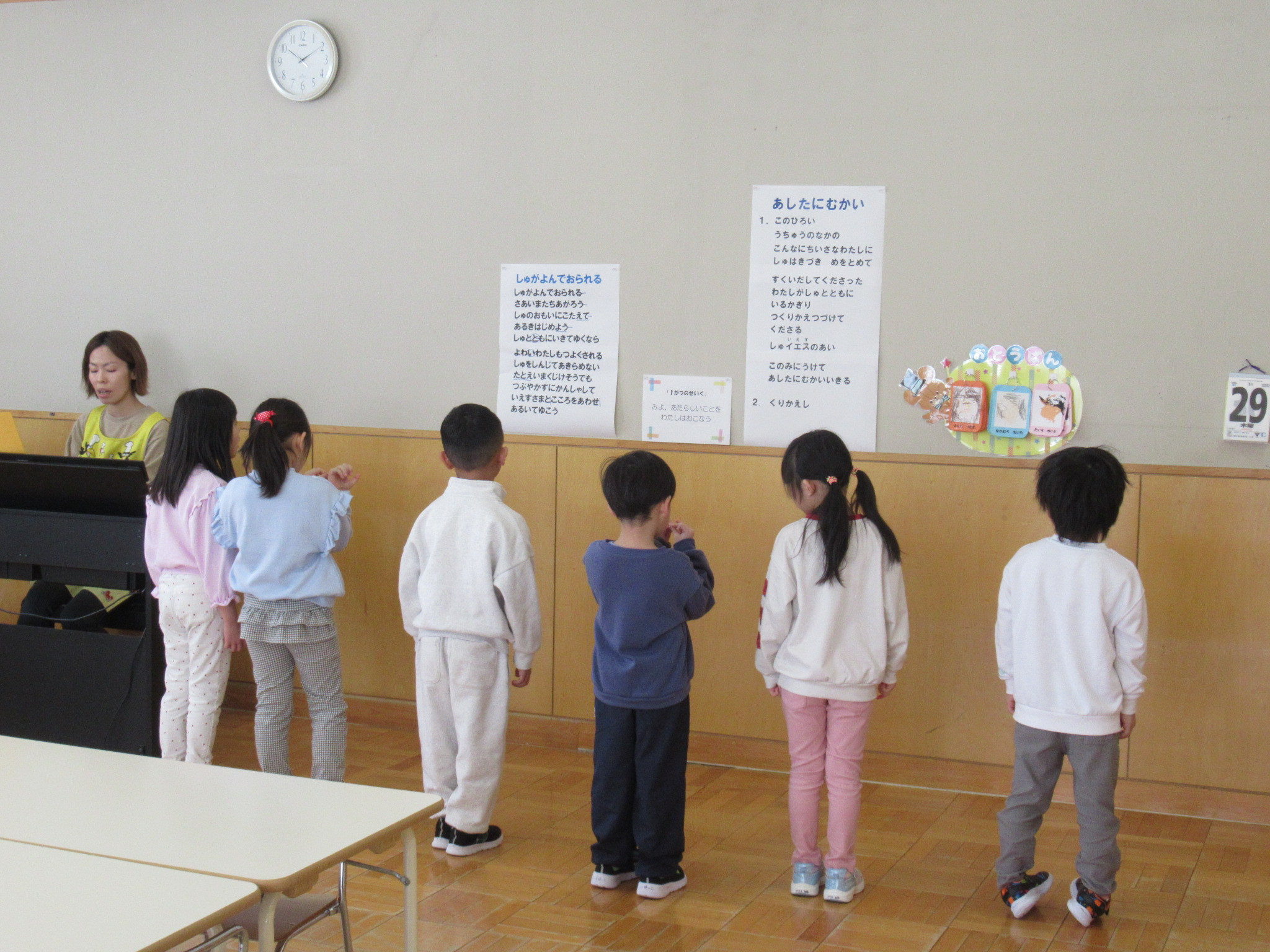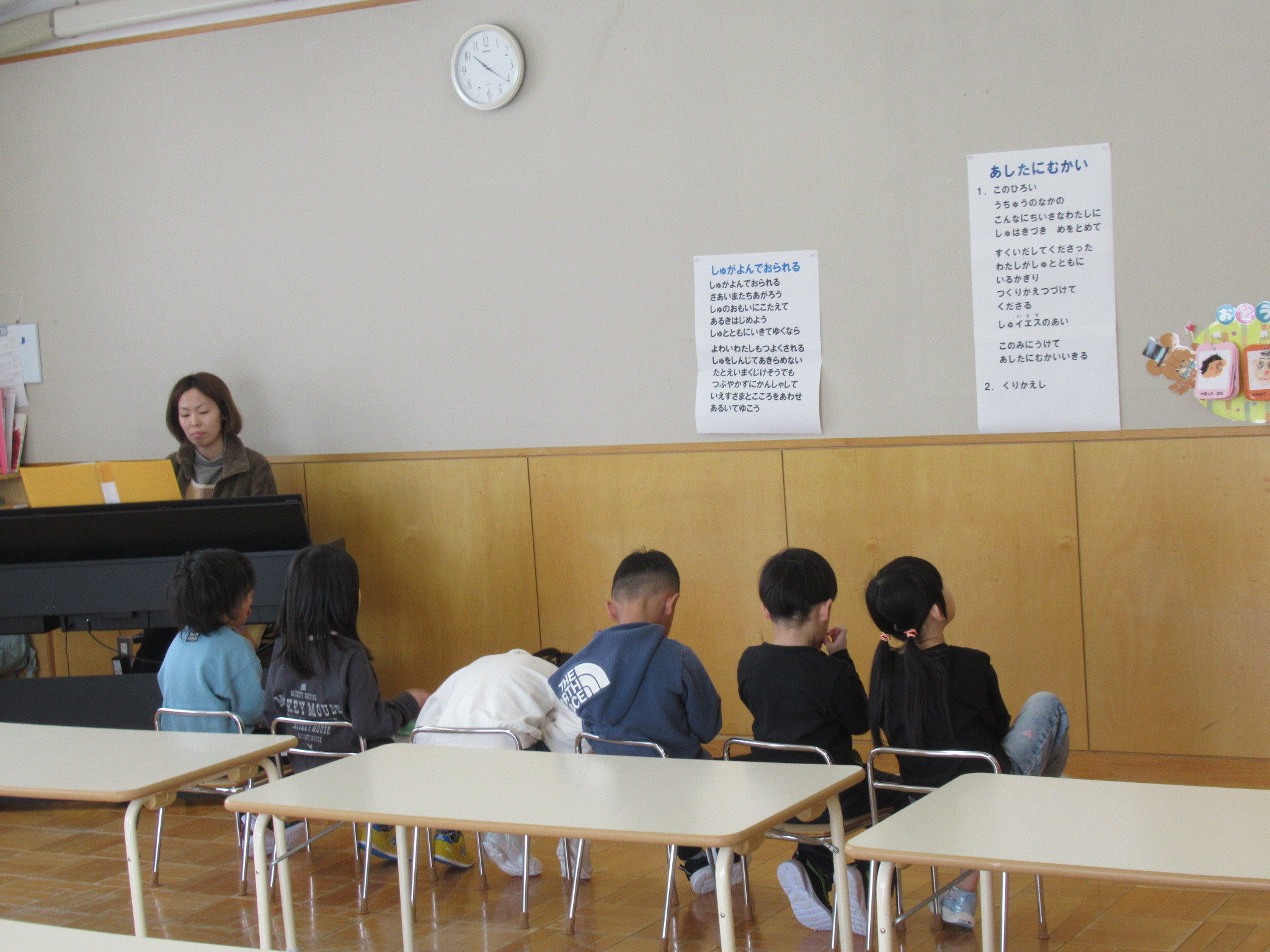 くじら組は新しい聖歌を歌っています。
