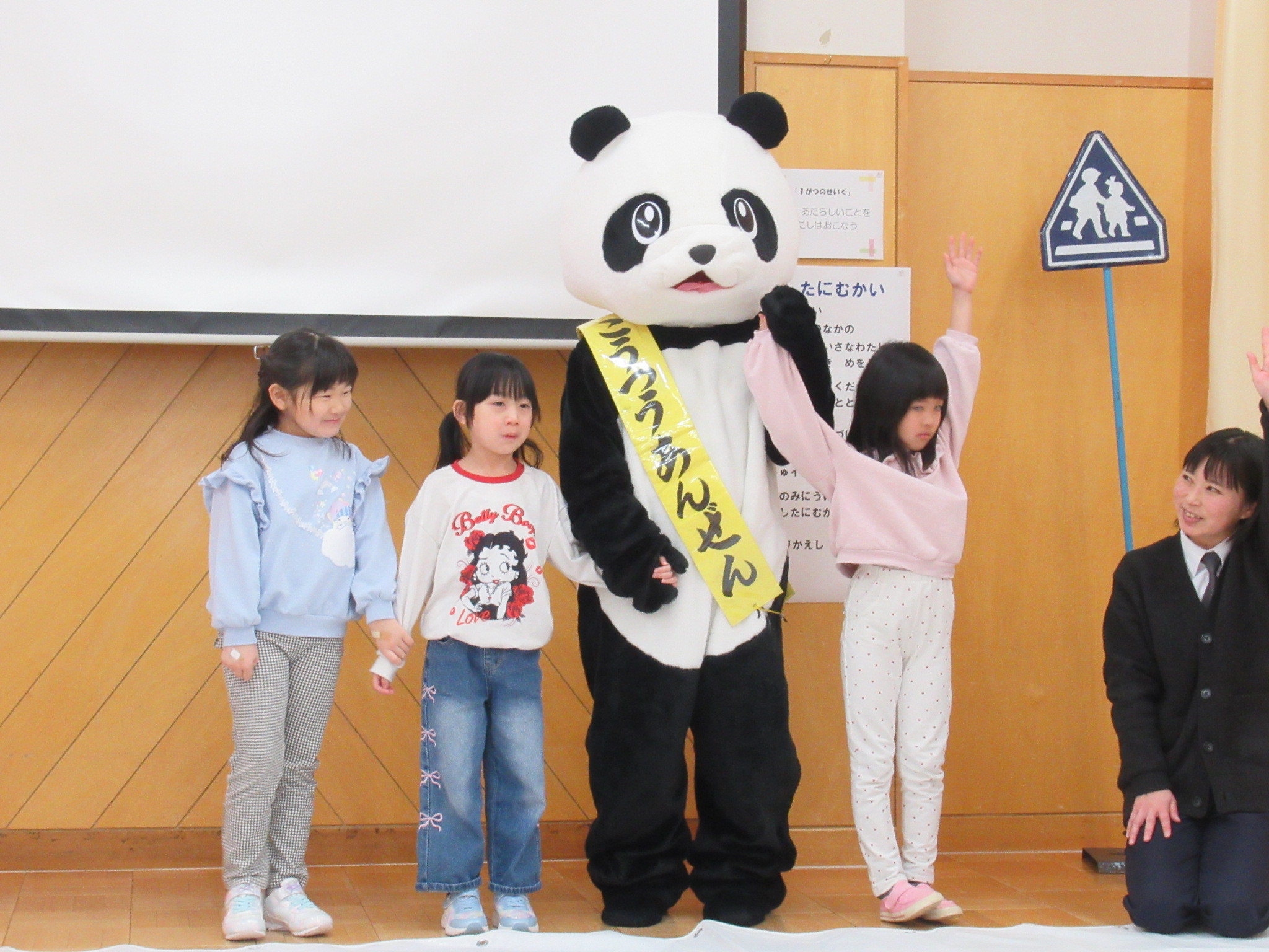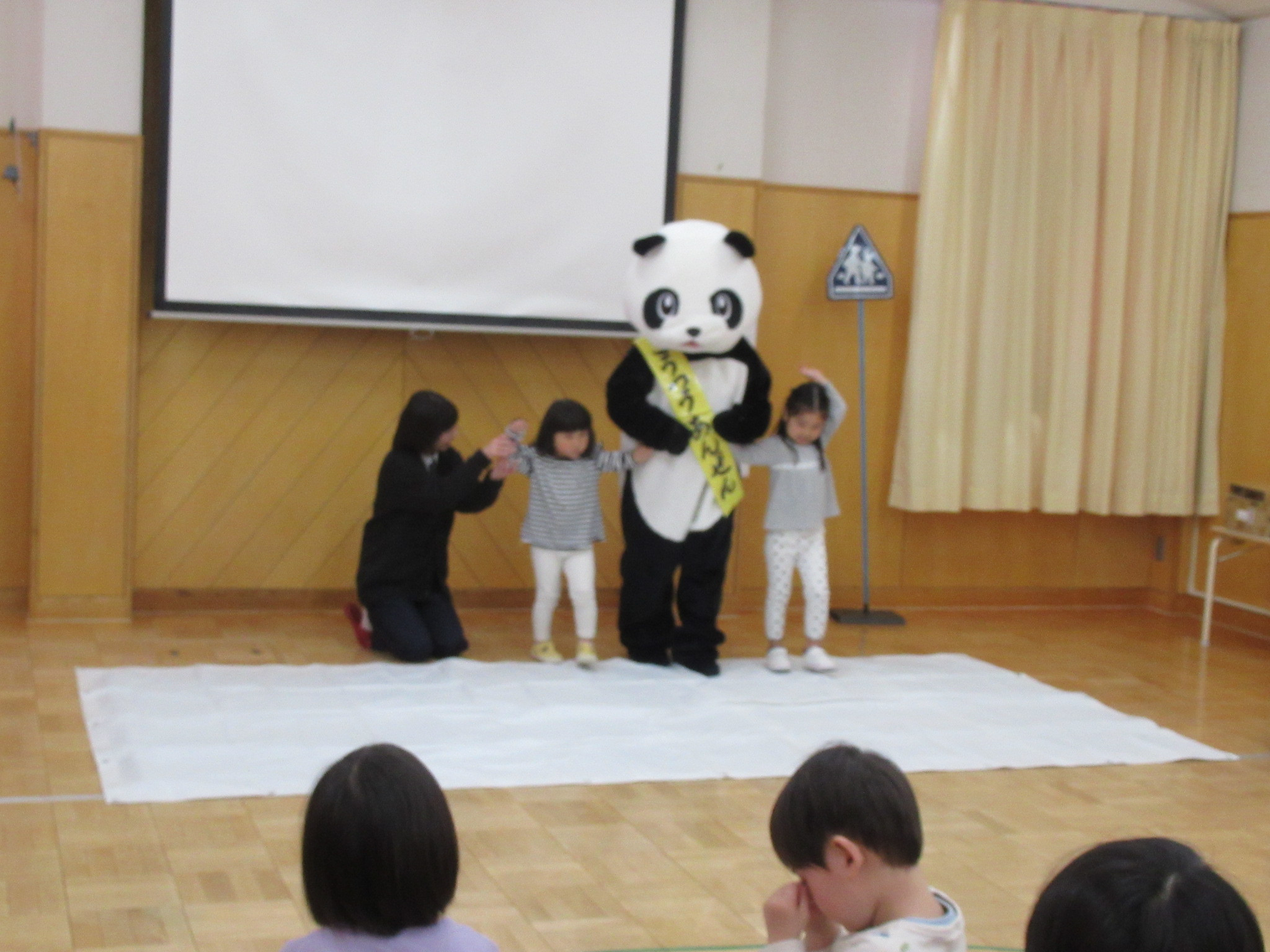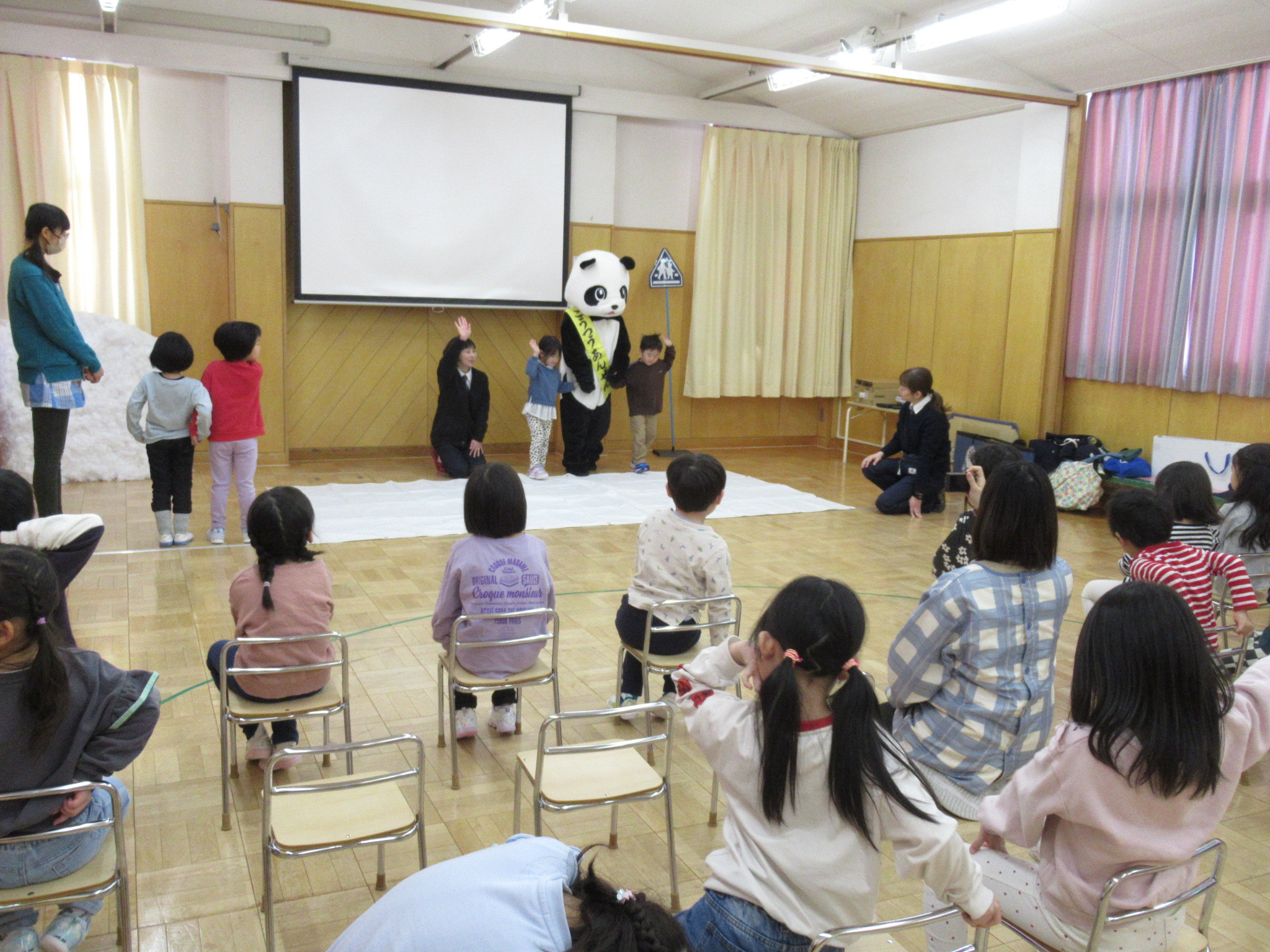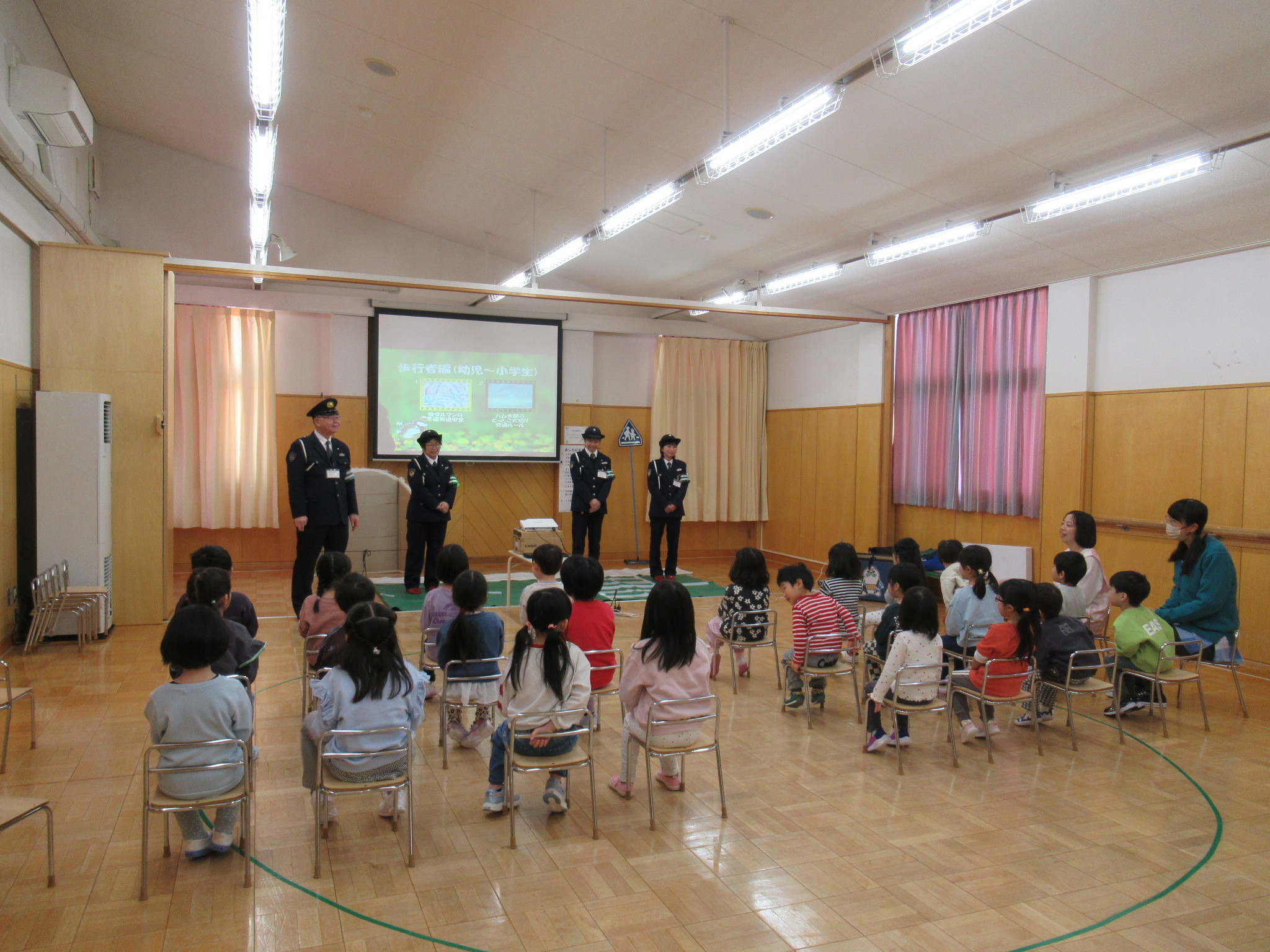 雪が降っているときの横断歩道の渡り方や、外遊びの時に気を付けることのお話しを聞きましたよ。